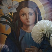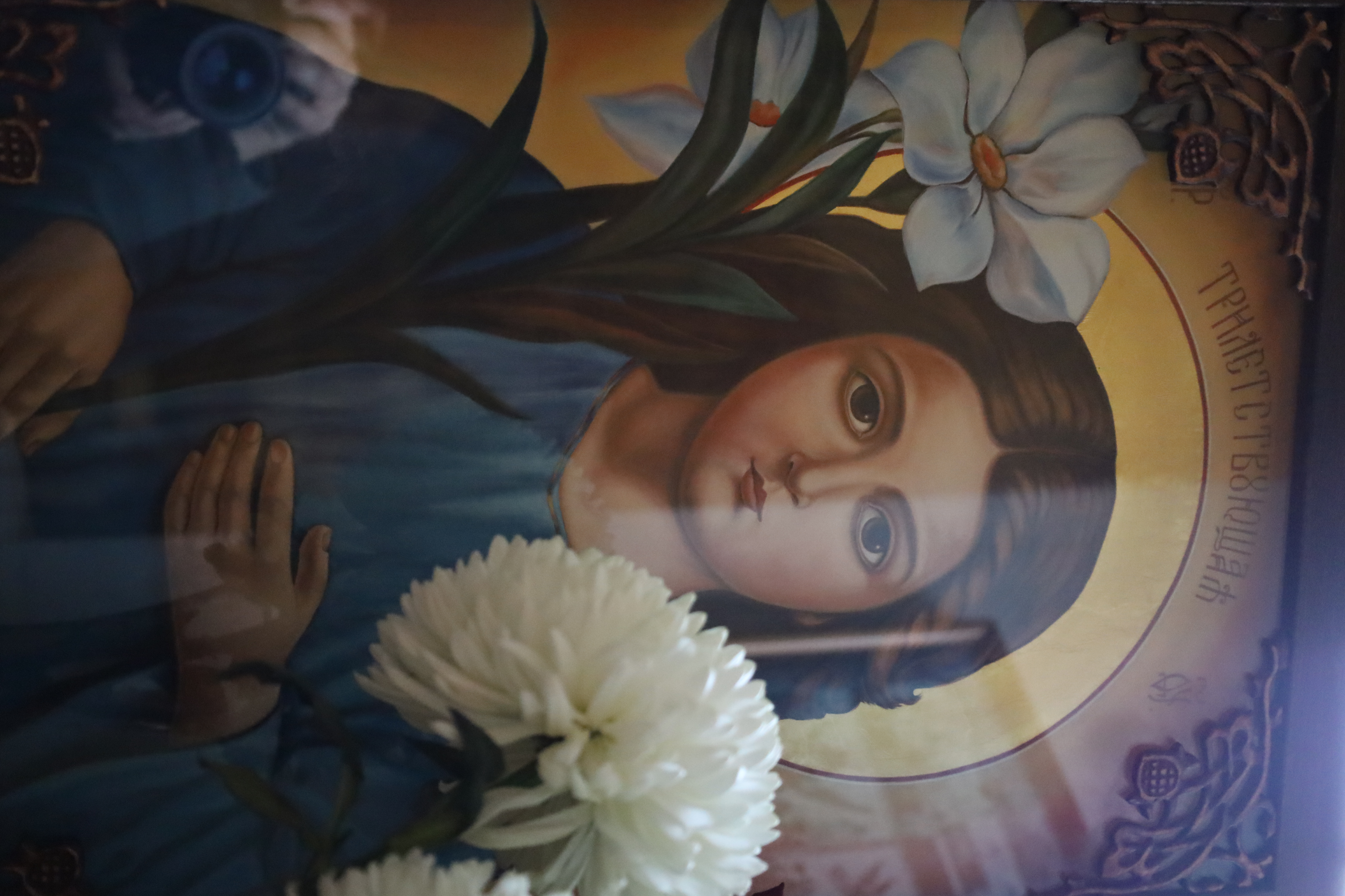После этого Пречистая Дева осталась жить при храме. Иконы отражают Предание о том, что Ей приносил пищу ангел.