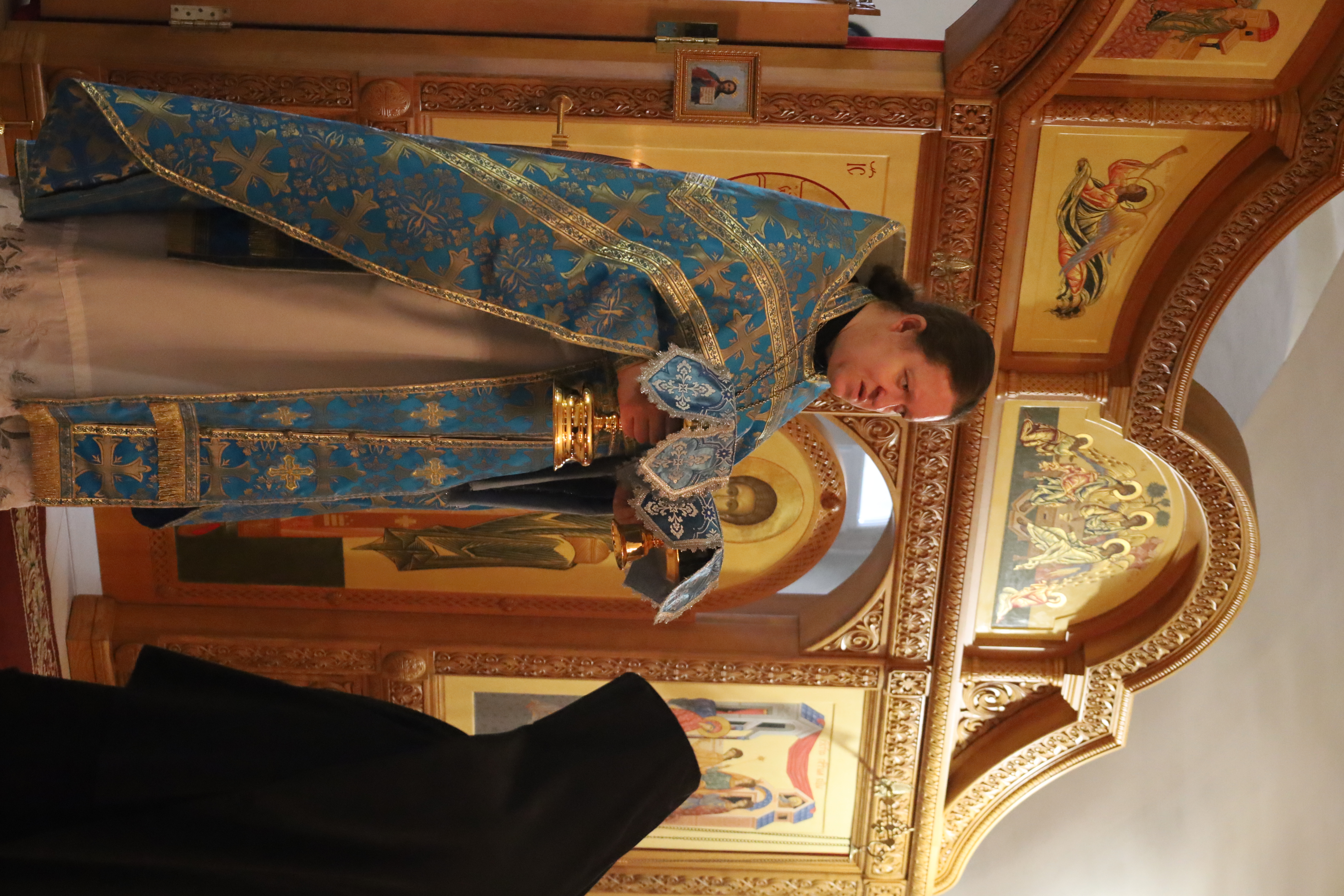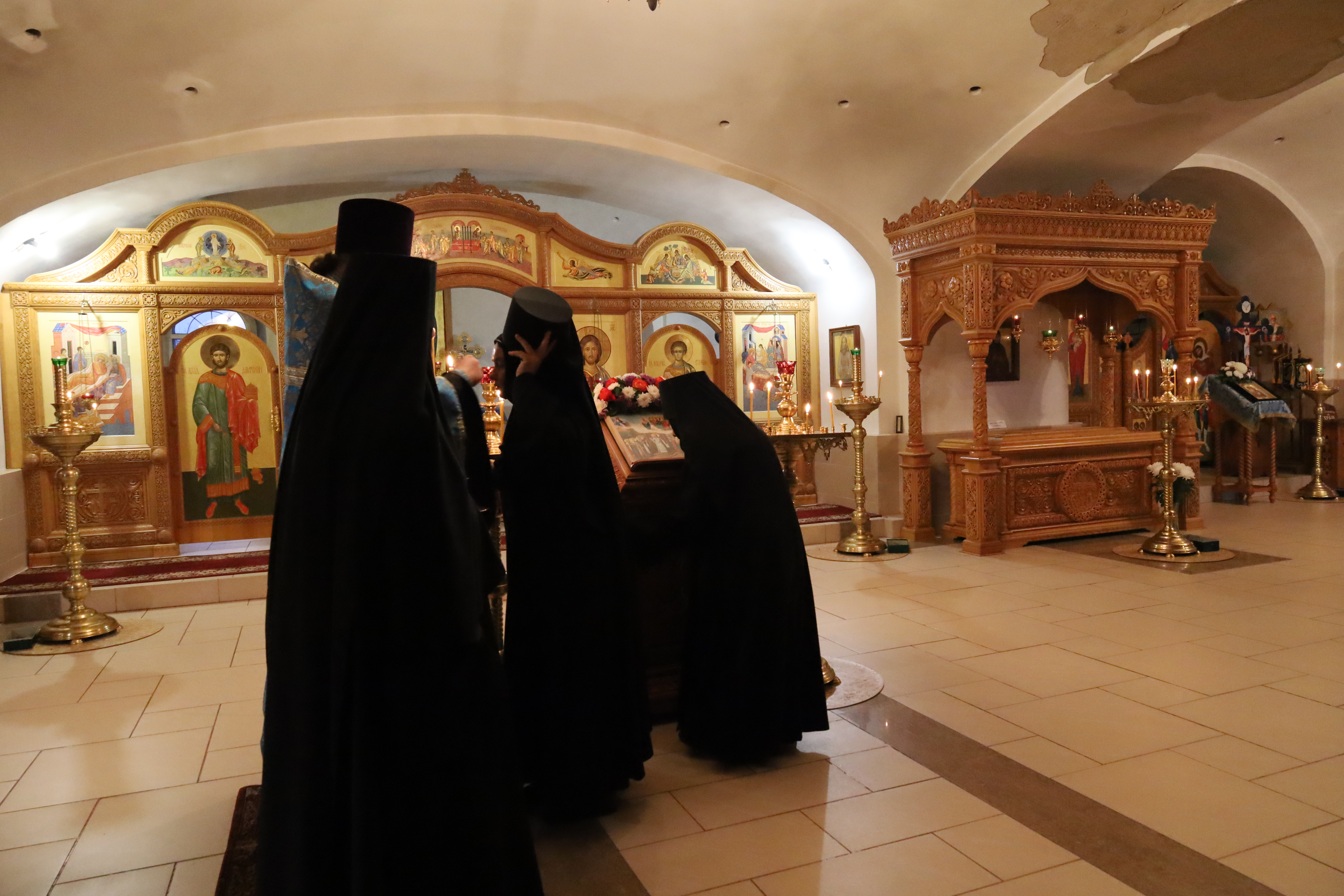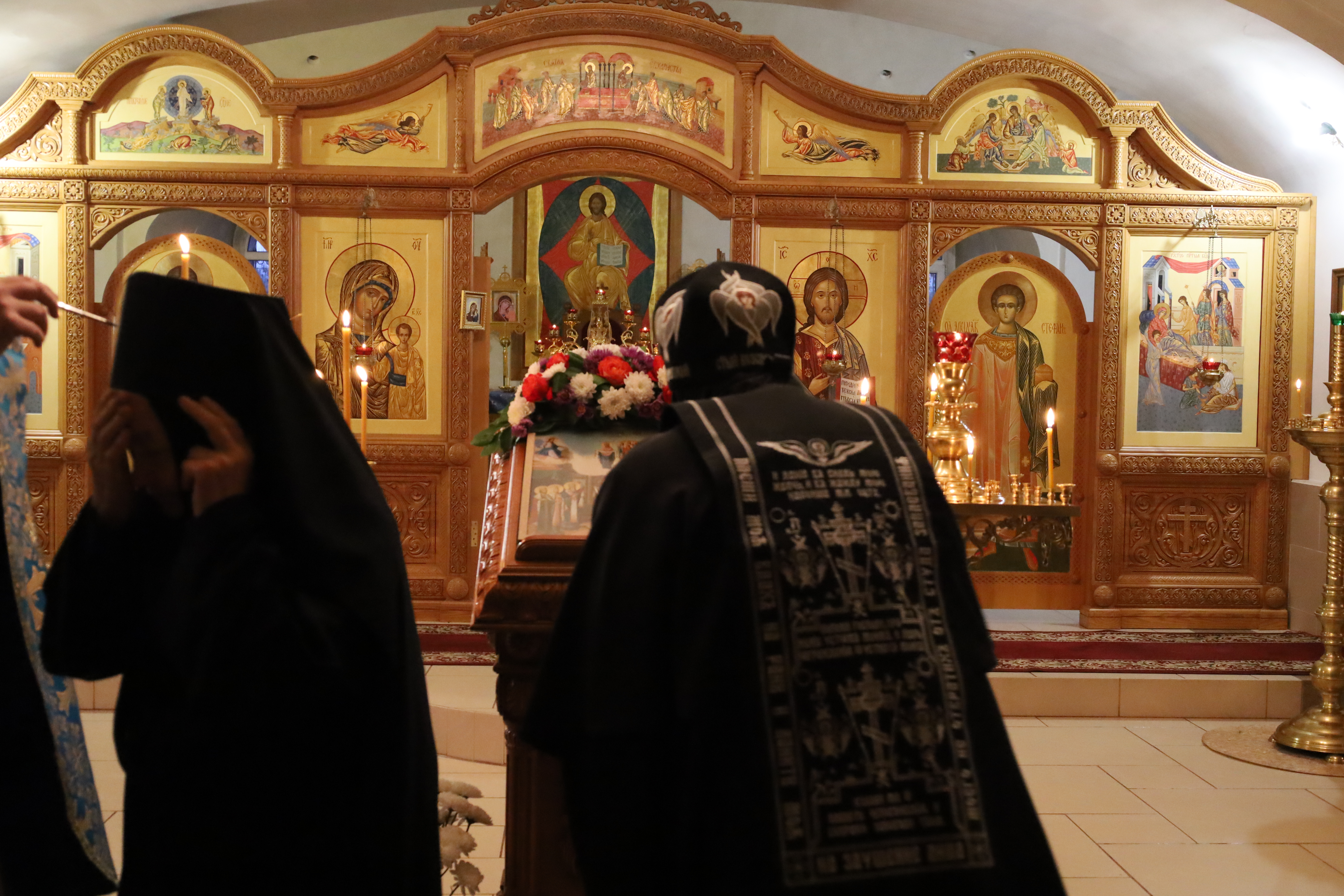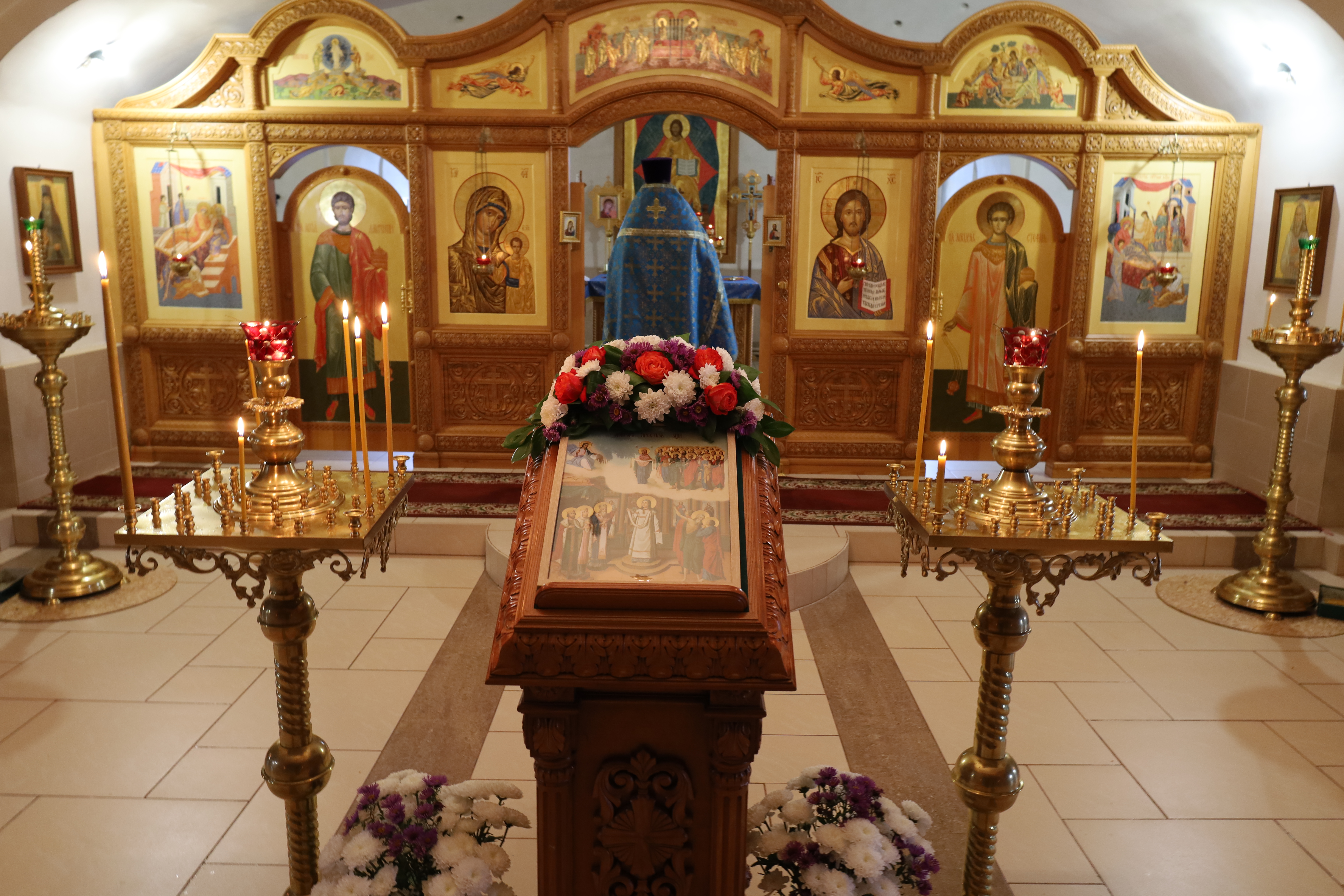 Все молящиеся на богослужении обращались к Божией Матери с прошением и ныне предстательствовать пред Господом за весь мир и покрыть страждующих от всякаго зла честным Своим омофором: «О Пресвятая Госпоже, Дево Богородице! Покрый нас чудесным Твоим омофором, / сохраняя град и люди от всякаго зла…».