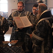 По окончании второй в этом году литургии Преждеосвященных Даров на середину храма выносится сосуд, наполненный зернами, вареными с медом, орехами, сухофруктами, и начинается молебен святому Феодору Тирону. Молебный канон великомученику Феодору Тирону с благословением колива совершил епископ Максим. По окончании молебна коливо, освященное в честь святого Феодора Тирона, раздали верующим.