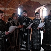 Песнопения исполнял хор сестер под управлением игумении Феофании. Певческая группа под управлением владыки Максима исполнила песнопение «Да исправится молитва моя…».