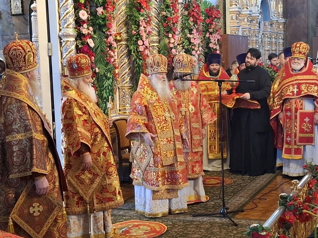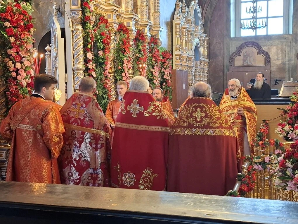 По окончании богослужения Владыка Арсений обратился к присутствующим с архипастырским словом и призвал на всех Божие благословение. Владыка Максим поздравил митрополита Арсения, схимитрополита Никона (Васина) и епископа Евфимия с праздником Светлого Христова Воскресения и преподнес пасхальные яйца и подарки.