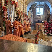 14 апреля, во вторник Светлой седмицы, Высокопреосвященнейший митрополит Липецкий и Задонский Арсений совершил Божественную Литургию во Владимирском соборе Задонского Рождество-Богородицкого мужского монастыря.