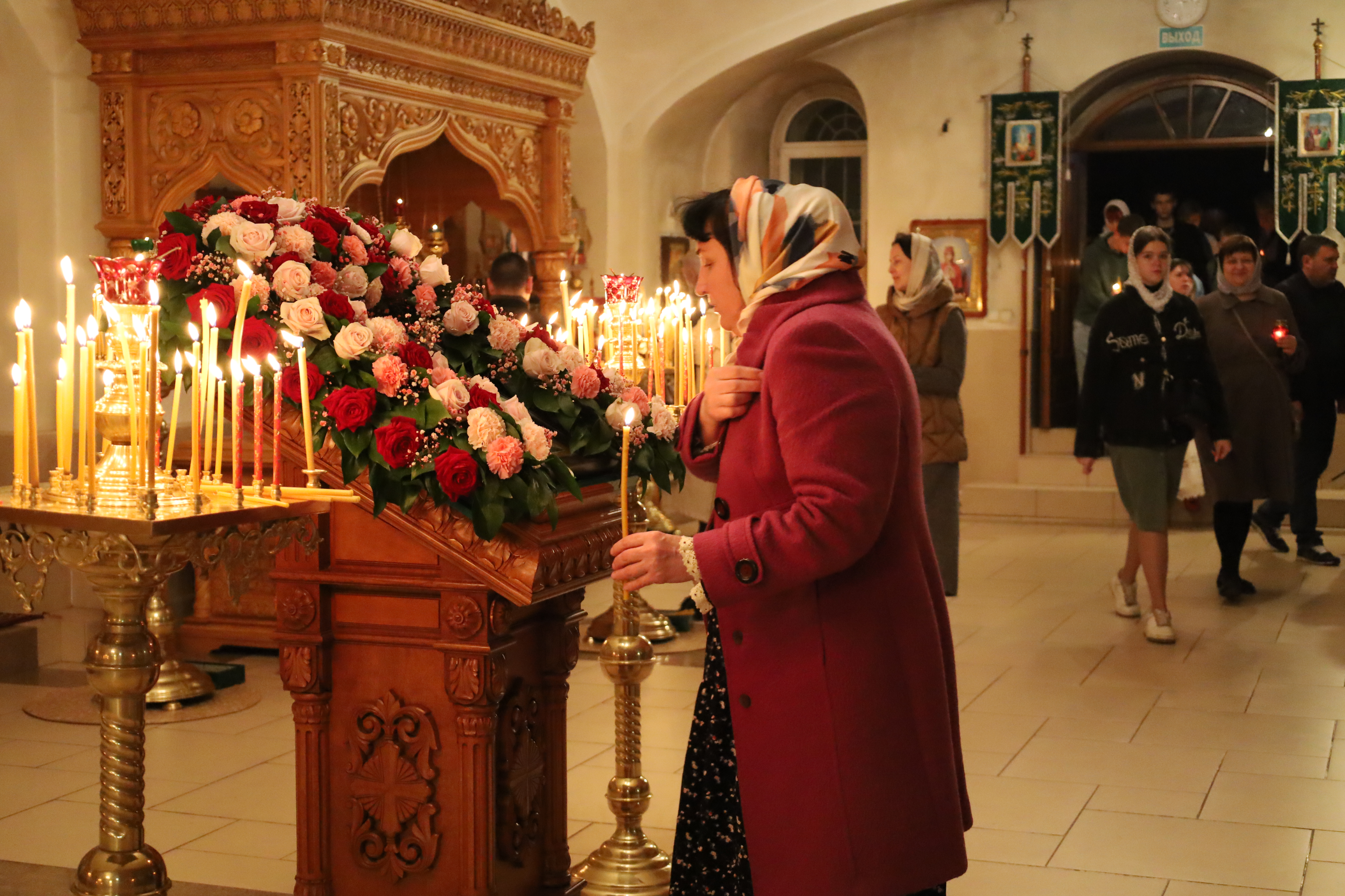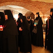 В едином духовном порыве клирики монастыря, хор, прихожане славословили воскресшего Спасителя песнопениями Пасхального канона — этого удивительного творения преподобного Иоанна Дамаскина. Пасхальный канон — центральное песнопение утрени — одного из главных церковных богослужений. Каждую песнь канона начинают петь священнослужители в алтаре, продолжает хор, а в это время священник с трисвещником и Крестом в руках кадит иконы и молящихся, приветствуя их восклицанием: «Христос воскресе!». Каждения и приветствия, совершаемые священнослужителями, напоминают о многократных явлениях Воскресшего Господа Своим ученикам и об их радости при виде Спасителя. Некоторые священнослужители даже ускоряют движение в этот момент богослужения, чтобы показать, как апостолы бежали, торопясь разнести весть о воскресении Христа.