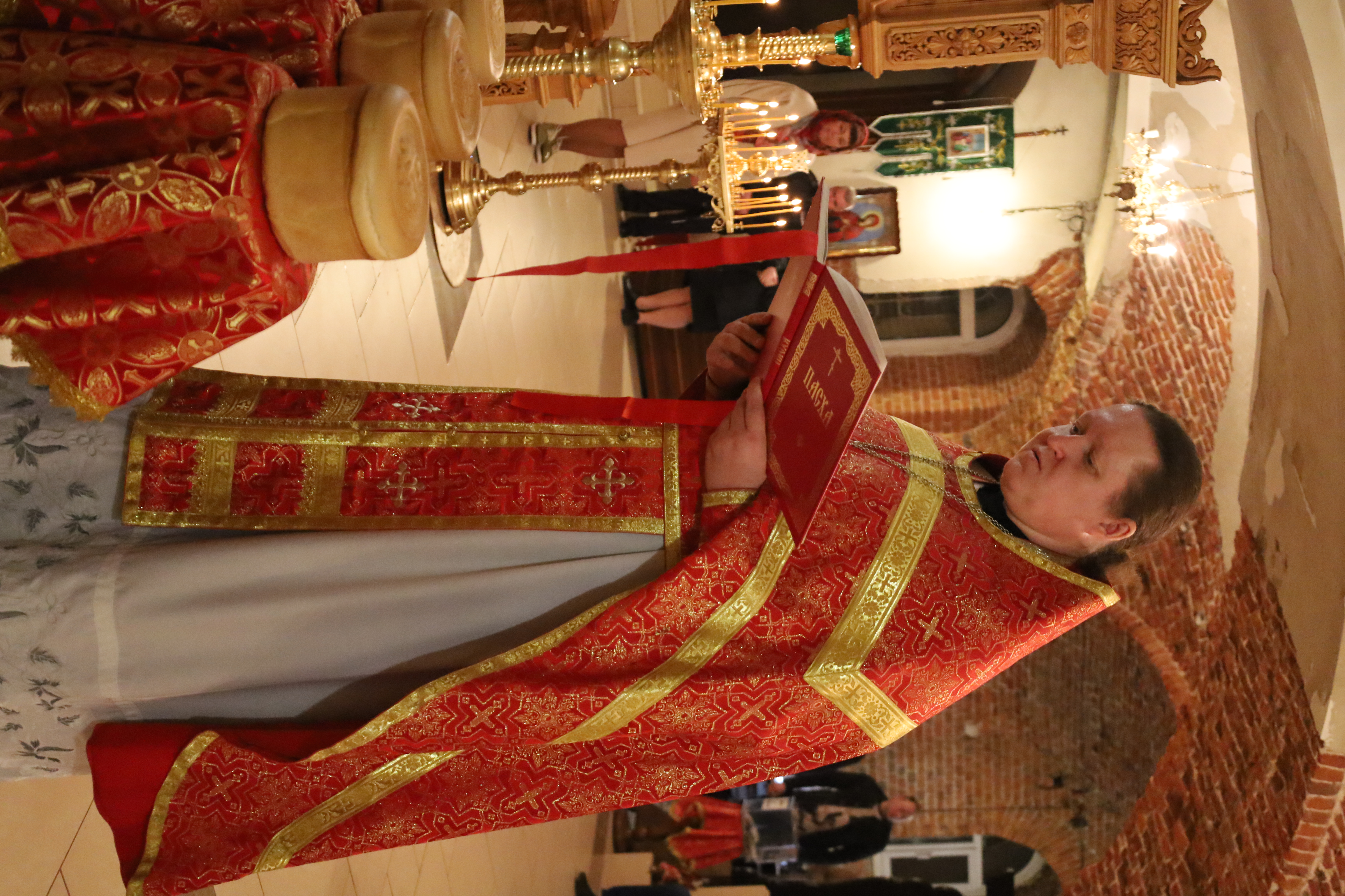 По завершении Пасхального канона была совершена Божественная Литургия с чтением первой главы Евангелия от Иоанна (стихи 1–17).
