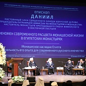 С докладом "Феномен современного расцвета монашеской жизни в египетских монастырях" выступил епископ Даниил, постоянный член Священного Синода Коптской Церкви, председатель Патриаршей комиссии по монастырям и монашеству, настоятель монастыря преподобного Павла Фивейского в Восточной пустыне.