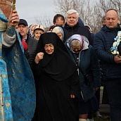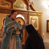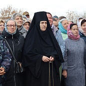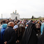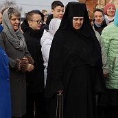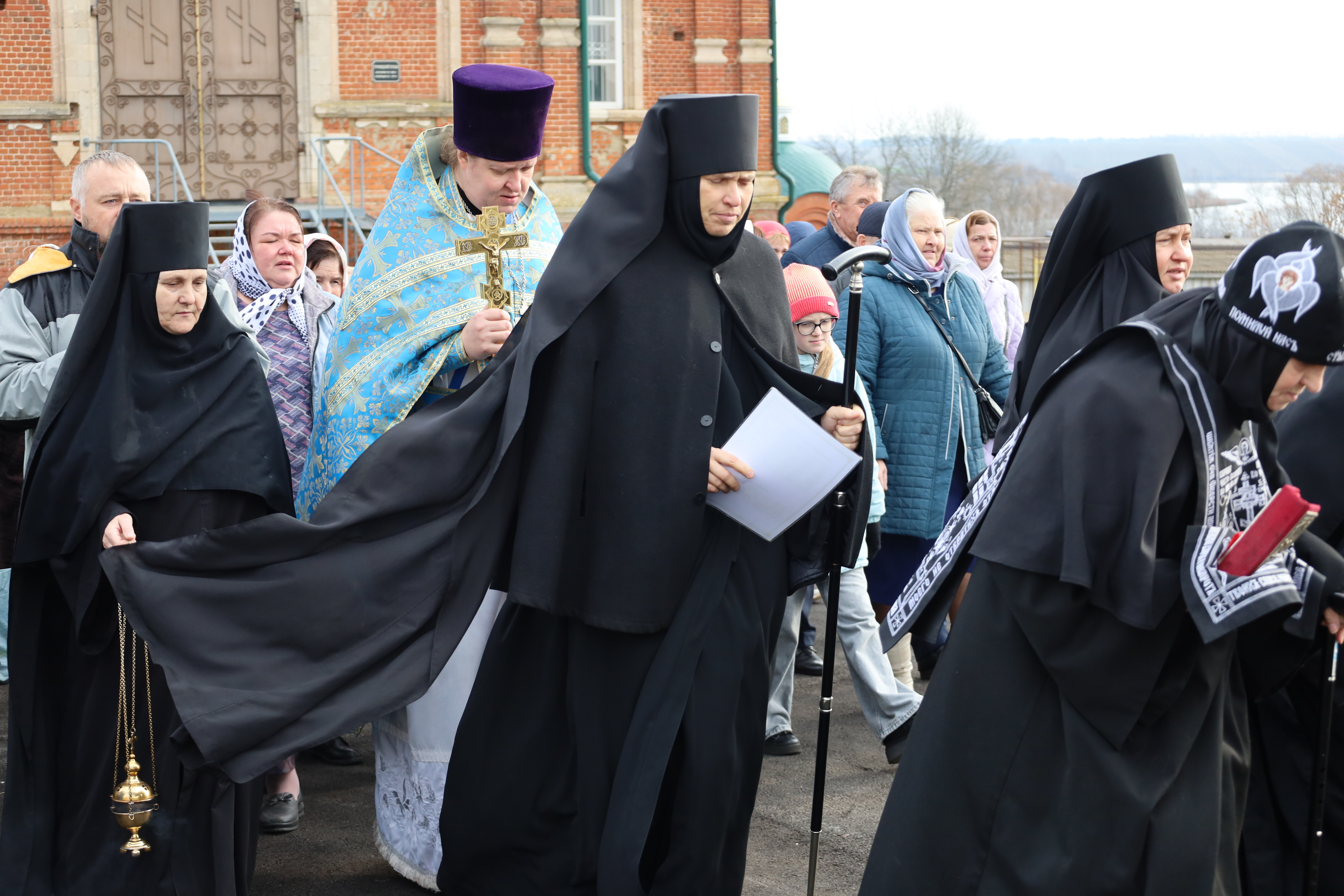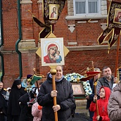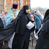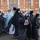 Красивая, возвышенная служба имела продолжение в праздничном молебне и крестном ходе вокруг Собора. Матушка игумения, сестры, паломники обращались с молением к Царице Небесной, чтобы Она приклонила к нам Свою милость и даровала духовную силу. В завершении молебна все молящиеся соборно пропели молитву : "Царице моя преблагая..."