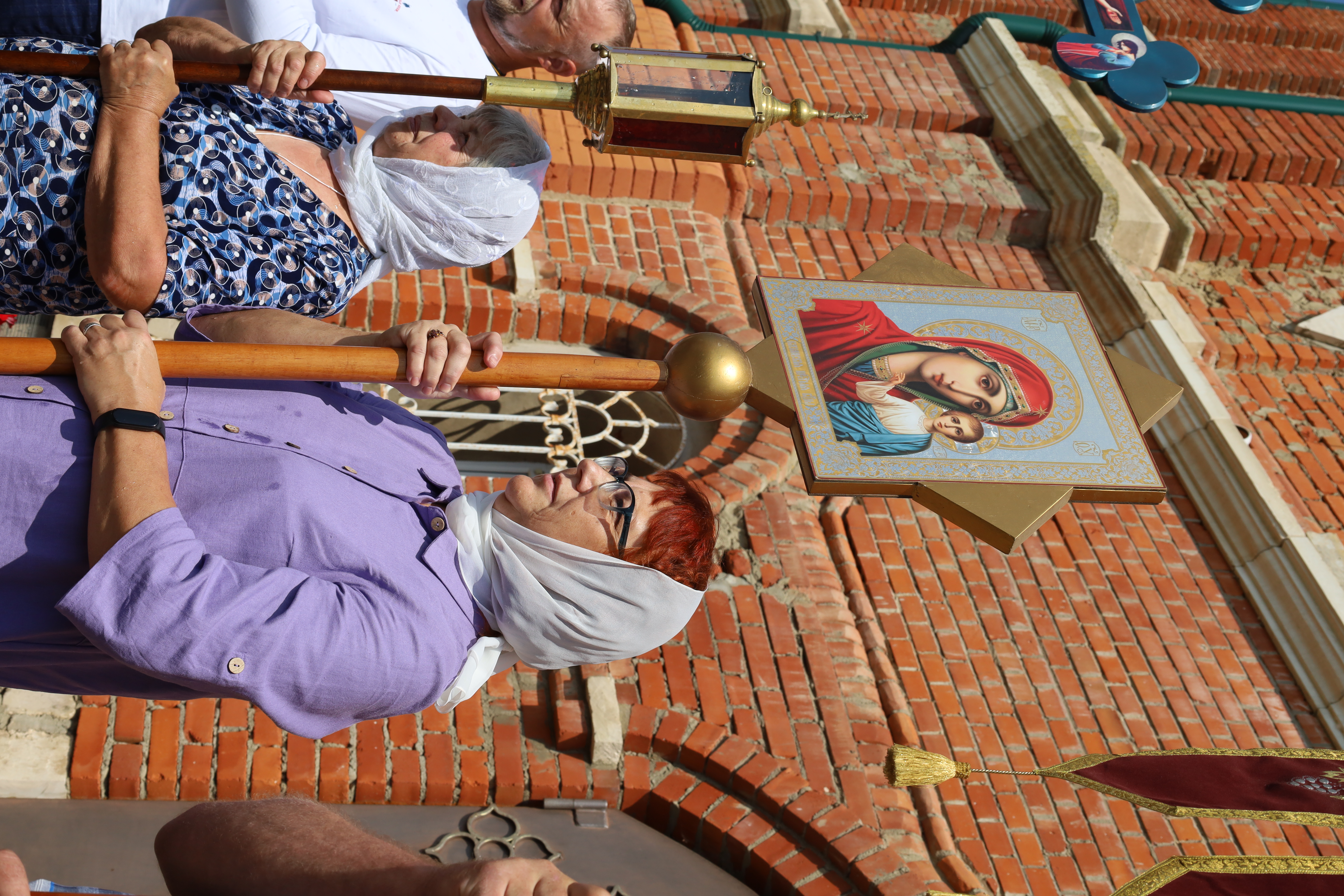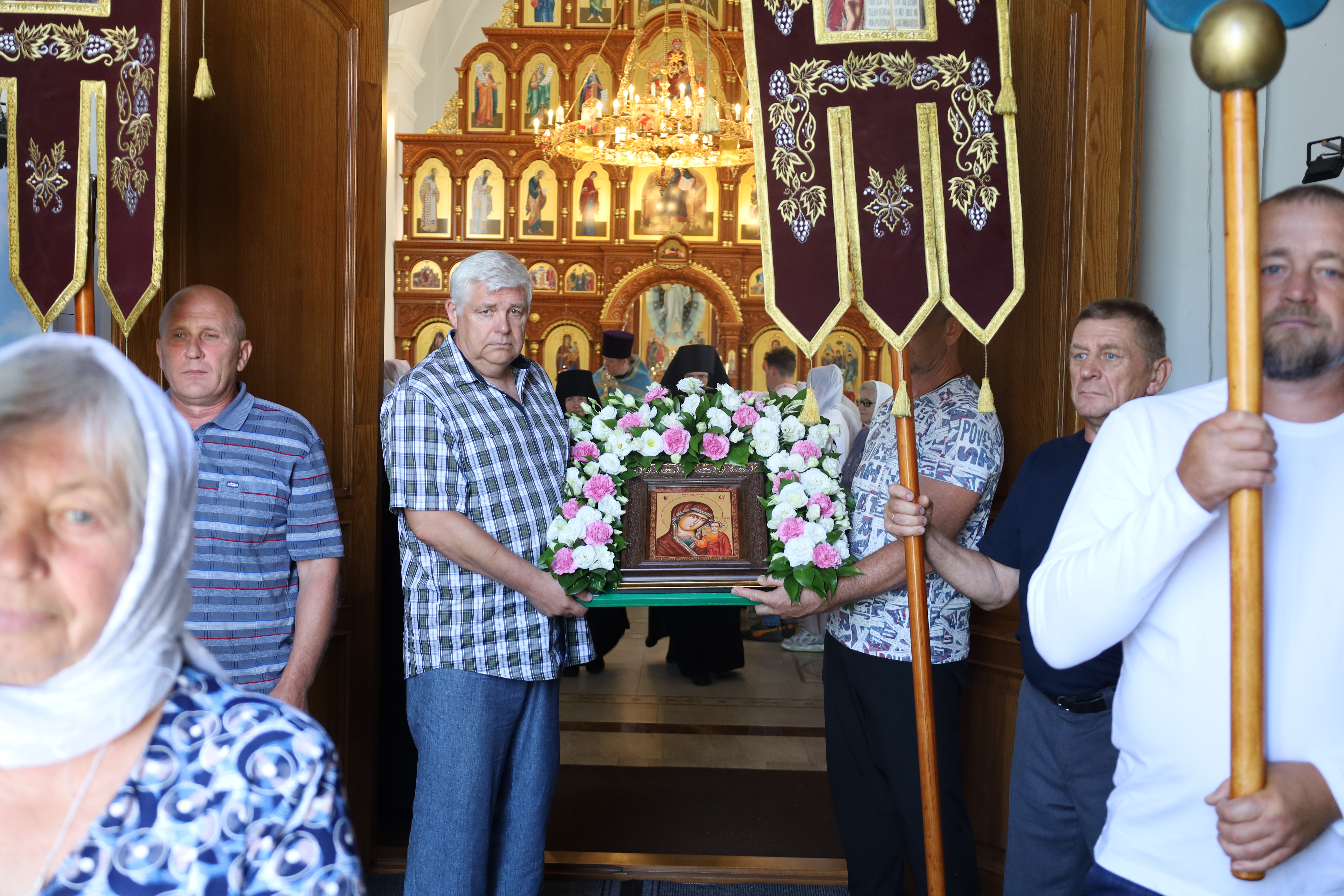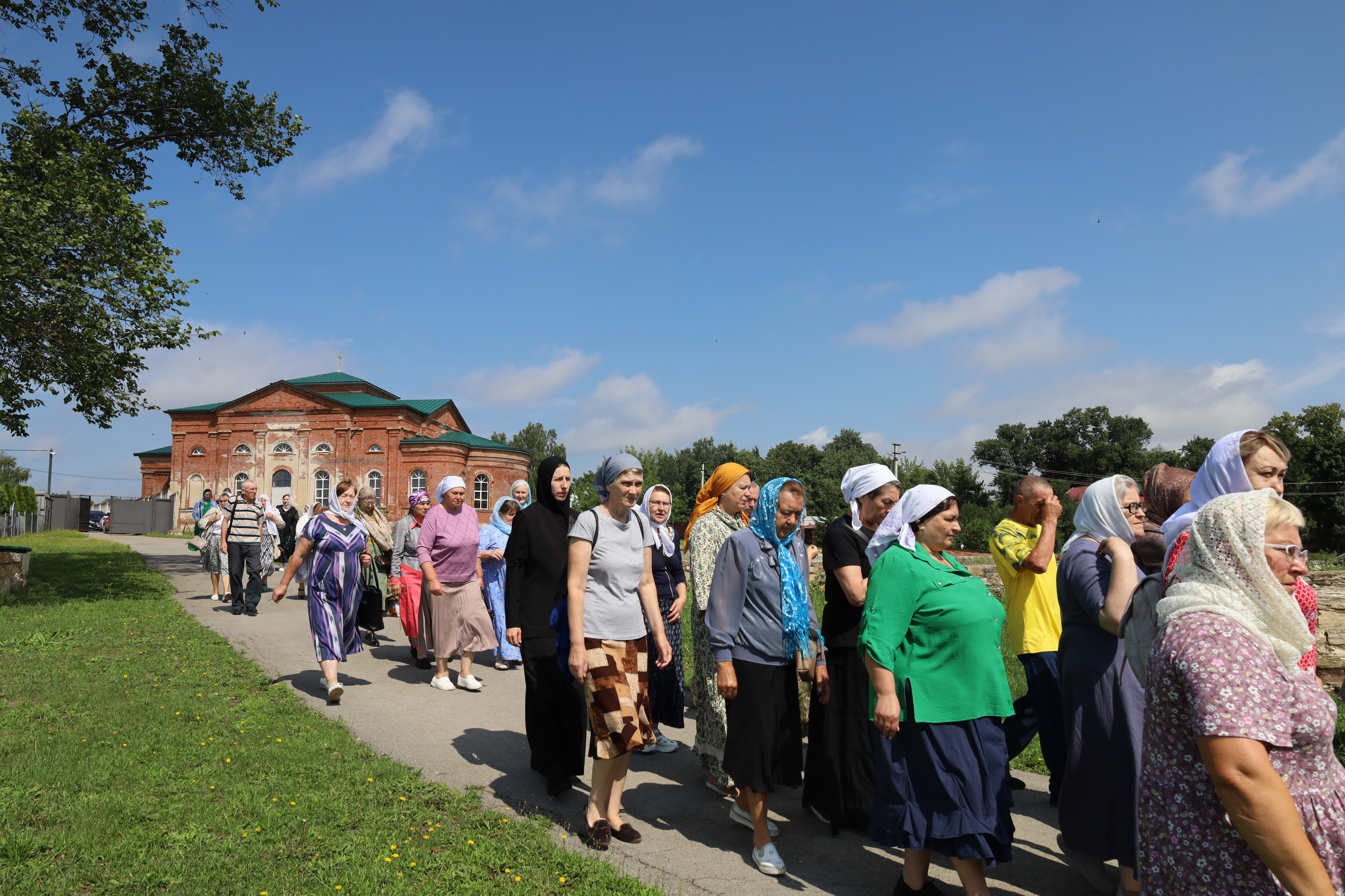 Служба продолжилась праздничным молебном перед Казанской иконой Пресвятой Богородицы. Затем начался торжественный крестный ход вокруг собора. Под звон колоколов духовенство, Матушка игумения, сестры и паломники совершили молитвенное шествие, молясь Царице Небесной: «Заступница усердная, Мати Господа Вышняго!», прося Ее о милости и духовной силе.