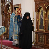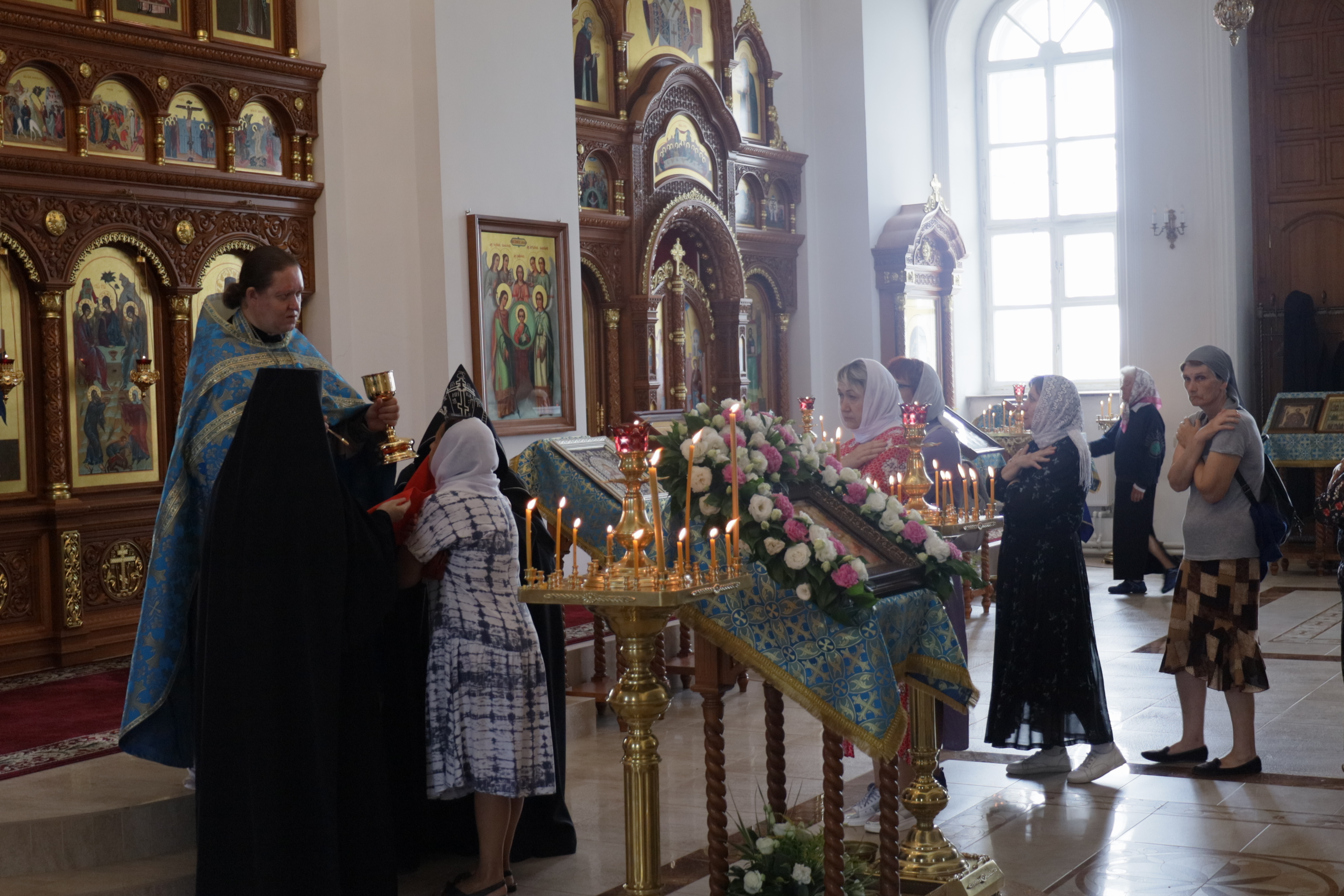 С вечера в обители было отслужено всенощное бдение. Праздничный день начался по монастырскому уставу акафистом перед Казанской иконой Пресвятой Владычицы нашей Богородицы, далее полунощница и Божественная литургия, за которой многочисленные прихожане сподобились причаститься Святых Христовых Таин.