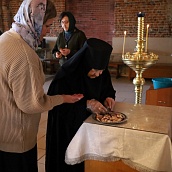 По окончании Литургии в Сезеновской обители совершен чин благословения хлеба и вина, для подкрепления сил верующих. Затем клирик Обители иерей Артемий Зиборов вознес молитву о мире на Святой Земле, совершаемую по традиции ежегодно в Великую Субботу.