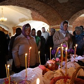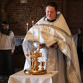 Утром, в субботу, в Сезеновском монастыре была отслужена вечерня с литургией свт. Василия Великого – одна из самых красивых служб года. Великий вход на литургии совершается в центре храма перед Плащаницей. На службе читаются 15 паремий – отрывков из Ветхого Завета, содержащих пророчества о Воскресении Христовом.