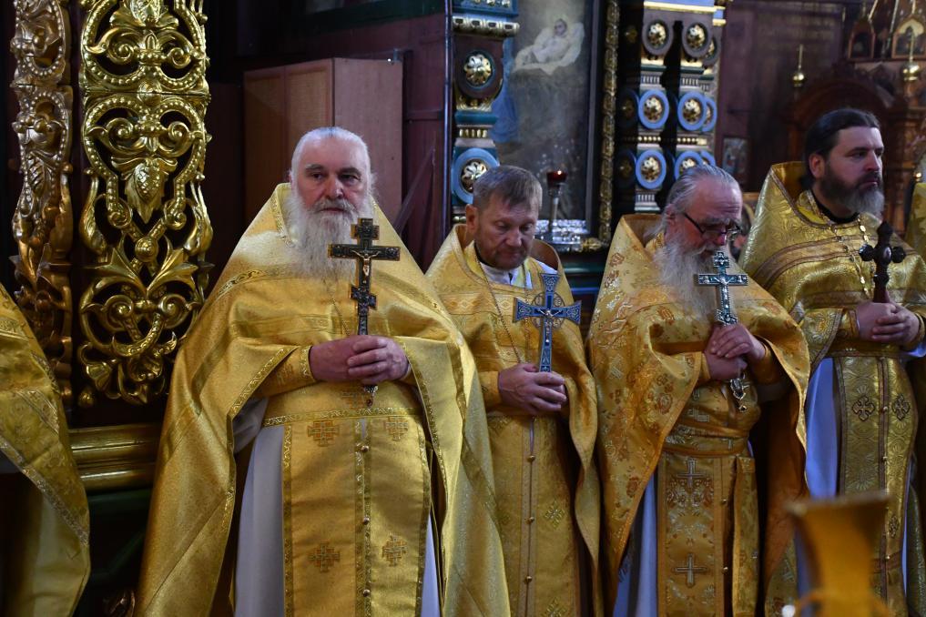 За богослужением молились руководитель епархиального отдела по монастырям и монашеству, настоятельница Иоанно-Казанского женского монастыря села Сезеново игумения Феофания (Проценко), настоятельница Св-Димитриевского Иларионовского женского монастыря села Троекурово игумения Матрона (Брыксина), настоятельница Знаменского женского монастыря г Ельца игумения Аркадия (Енькова), духовенство и многочисленные прихожане.