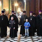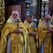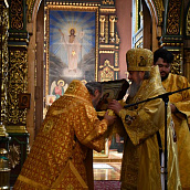 Богослужебные песнопения исполнили архиерейский хор – регент иерей Владимир Нескоромный и соборной хор - регент Л.Г. Белькова. Диаконский чин возглавил клирик Богоявленского Елоховского собора города Москвы протодиакон Николай Платонов.
