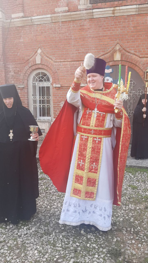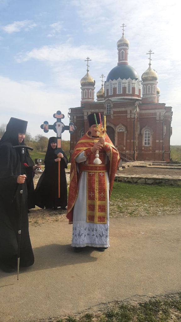 Сегодня, в этот памятный день, в обители отслужили Божественную литургию. По заамвонной молитве, по случаю Пасхи, духовенство и сестры совершили крестный ход вокруг Троицкого собора.