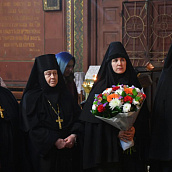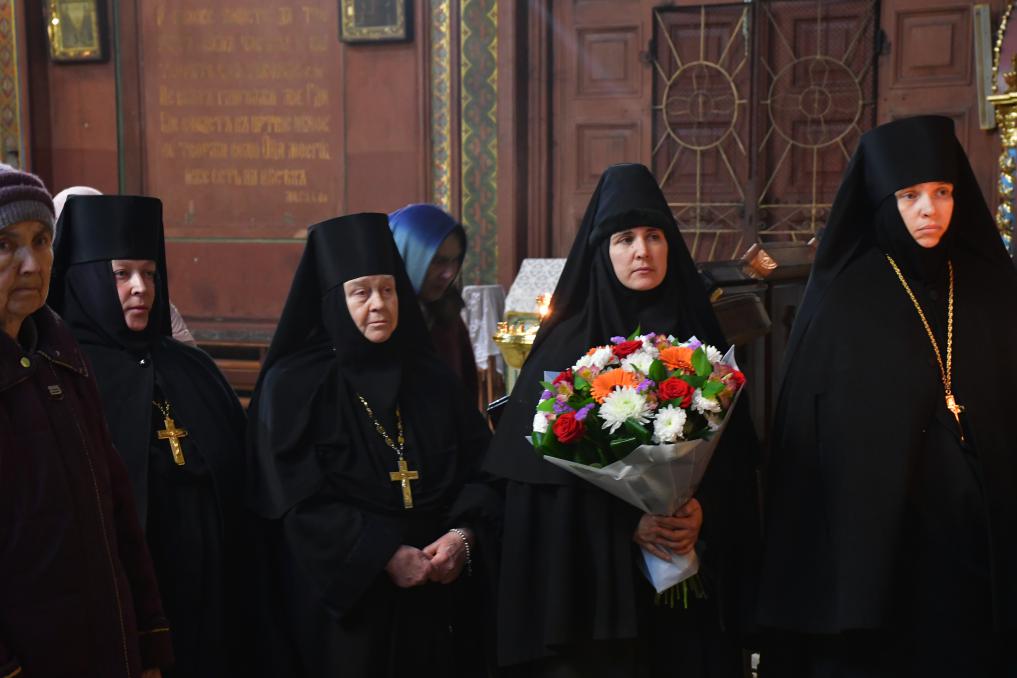 За богослужением молились настоятельница Иоанно-Казанского женского монастыря села Сезеново, руководитель епархиального отдела по монастырям и монашествующим игумения Феофания (Проценко), и.о. настоятельницы Знаменского монастыря города Ельца монахиня Аркадия (Енькова), настоятельница Троицкого монастыря Лебедяни игумения Гликерия (Соболева), настоятельница Свято-Димитриевского Иларионовского женского монастыря села Троекурово игумения Матрона (Брыскина), прихожане собора и жители города.