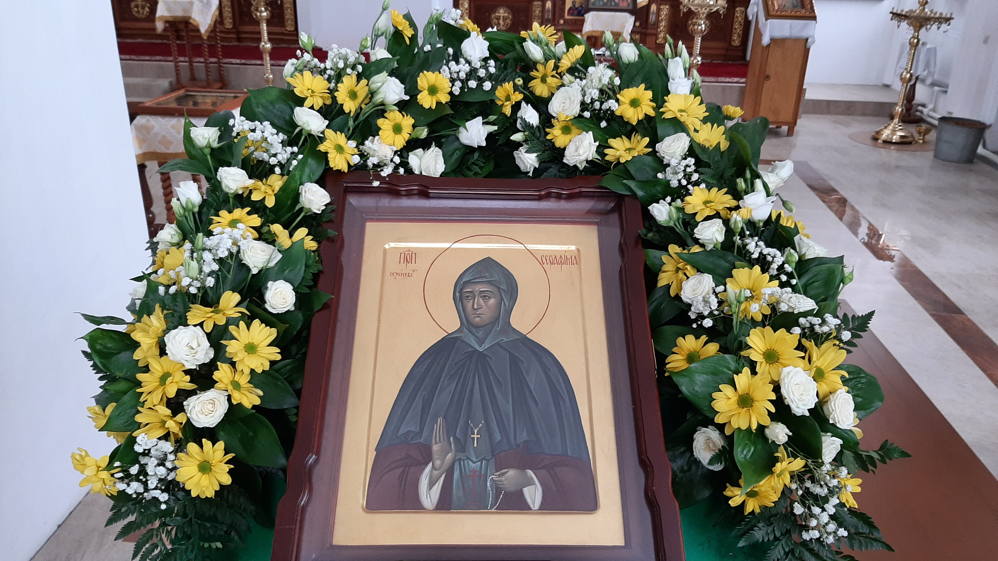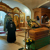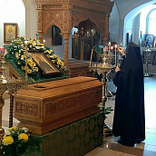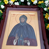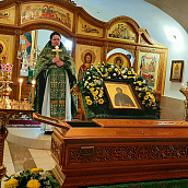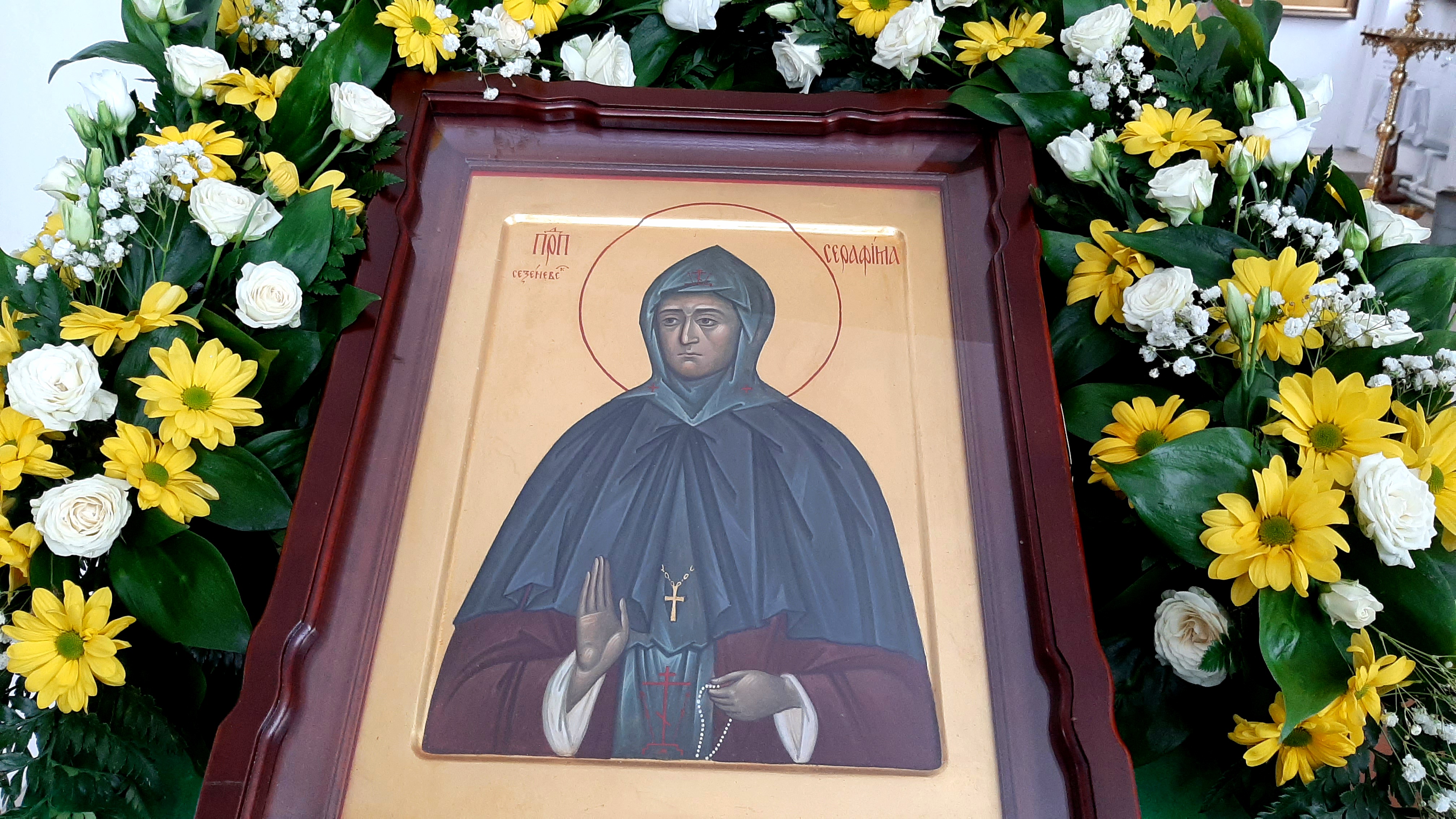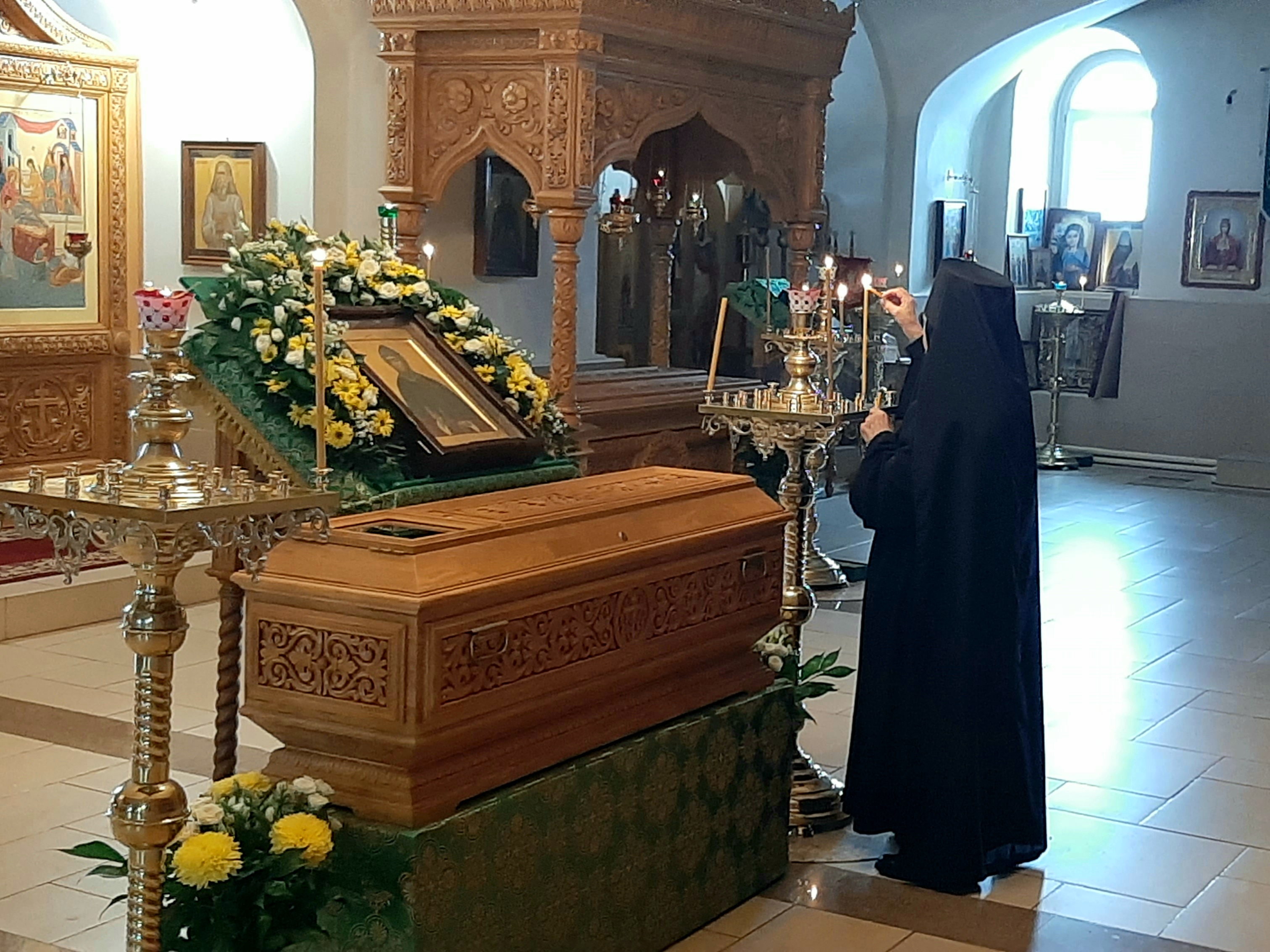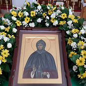 По окончании богослужения, в честь престольного праздника, было совершено славление преподобной Серафиме с пением тропаря, кондака и величания перед ракой с ея честными мощами.