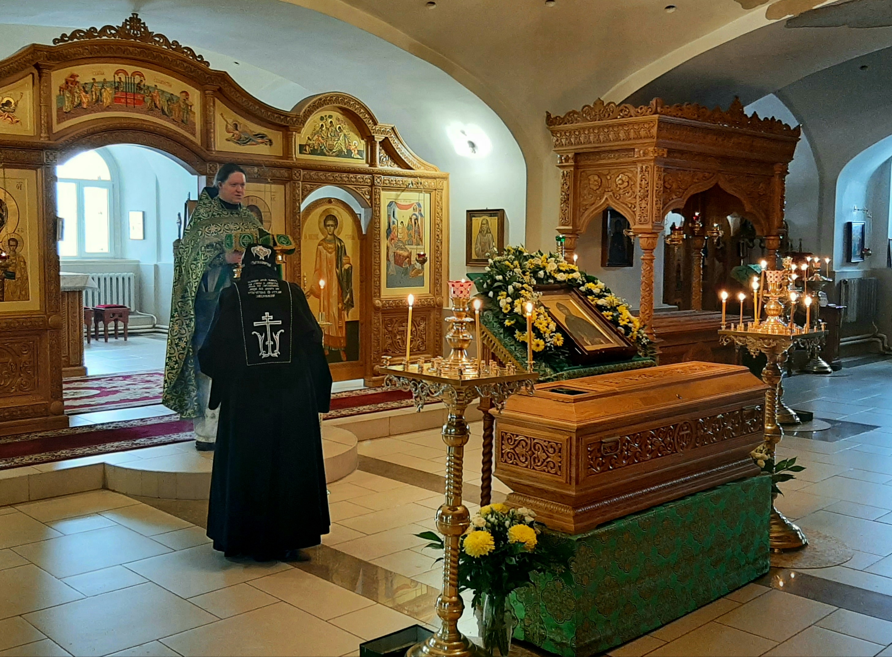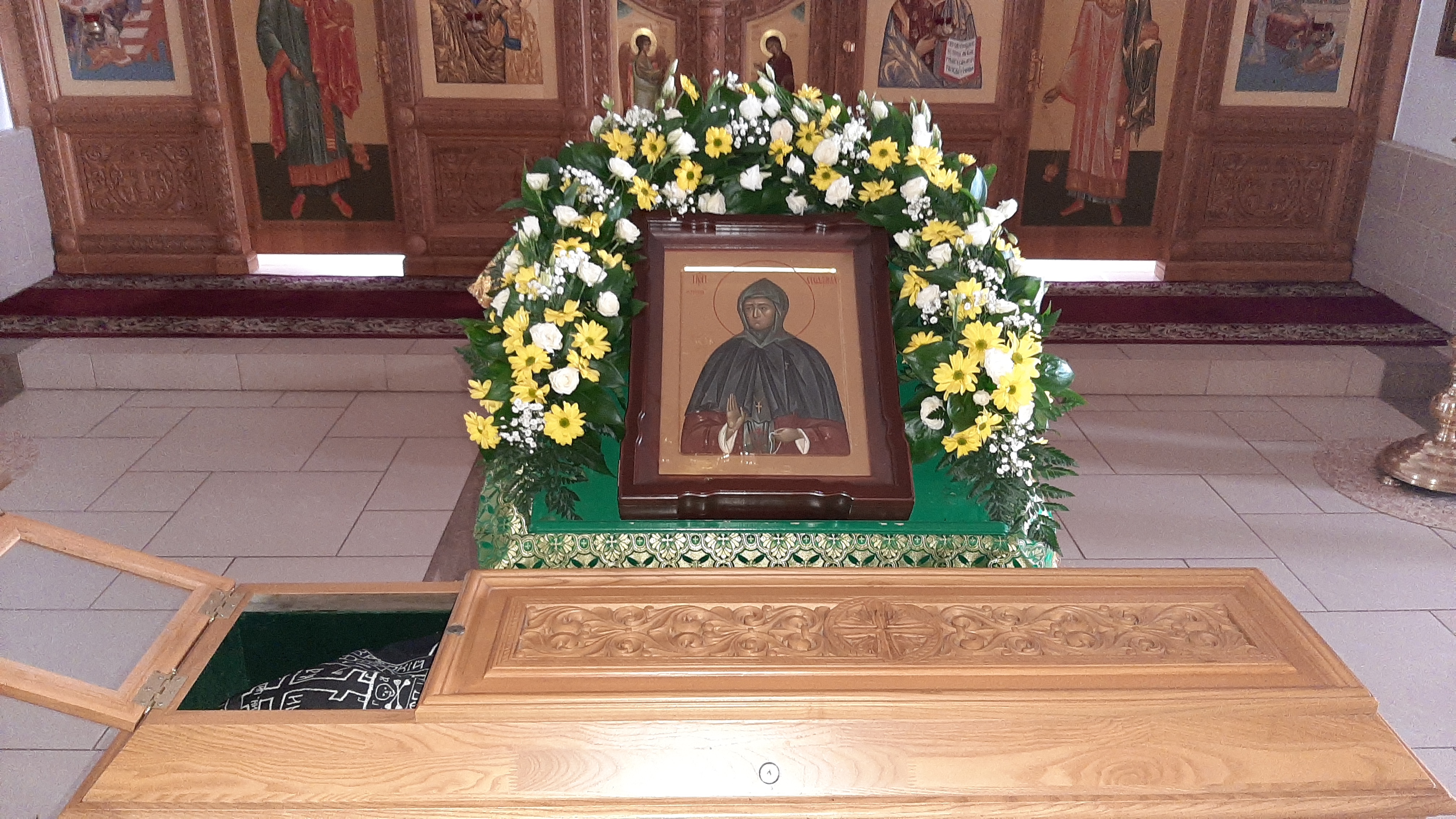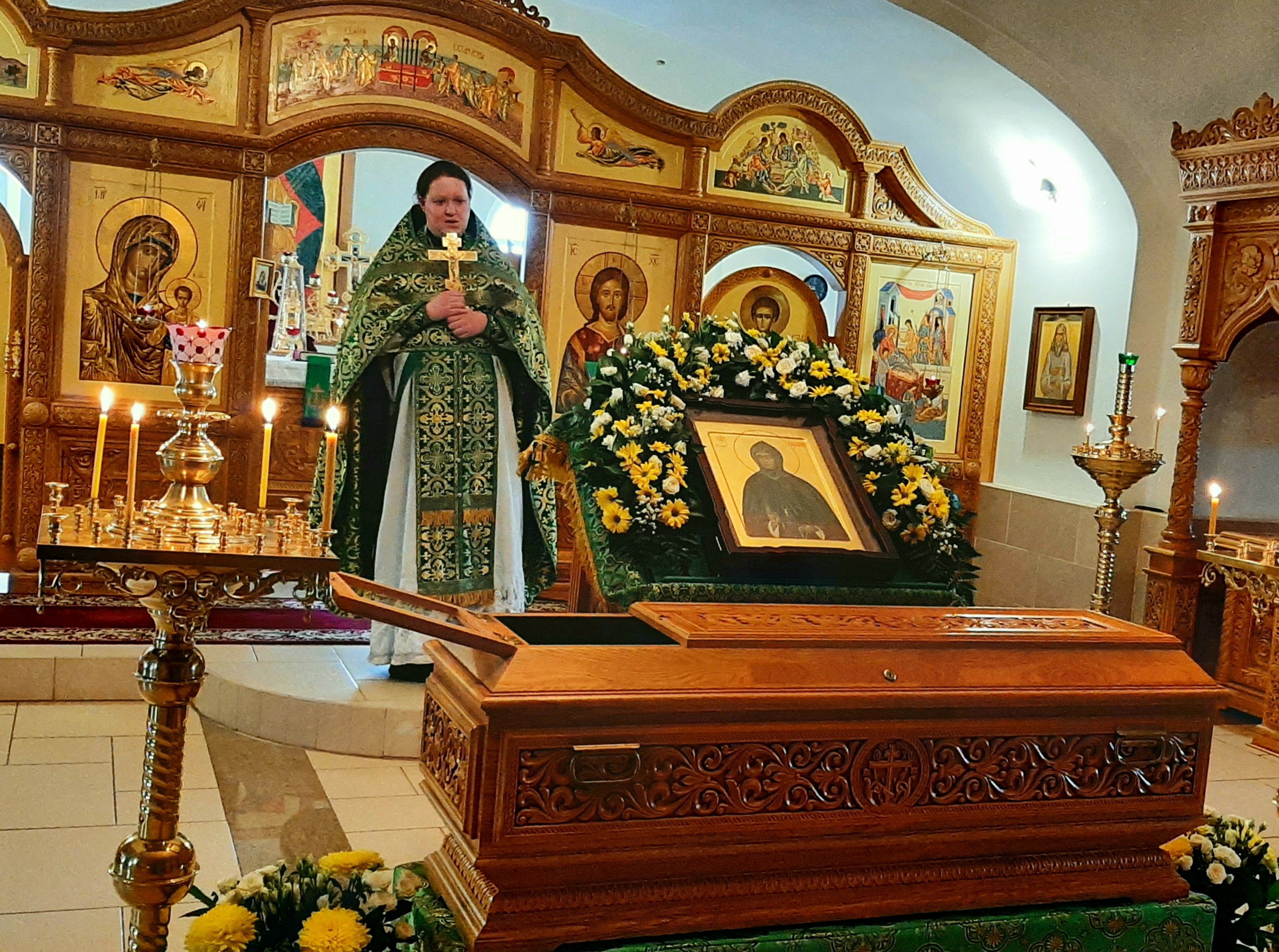 По окончании богослужения, в честь престольного праздника, было совершено славление преподобной Серафиме с пением тропаря, кондака и величания перед ракой с ея честными мощами.