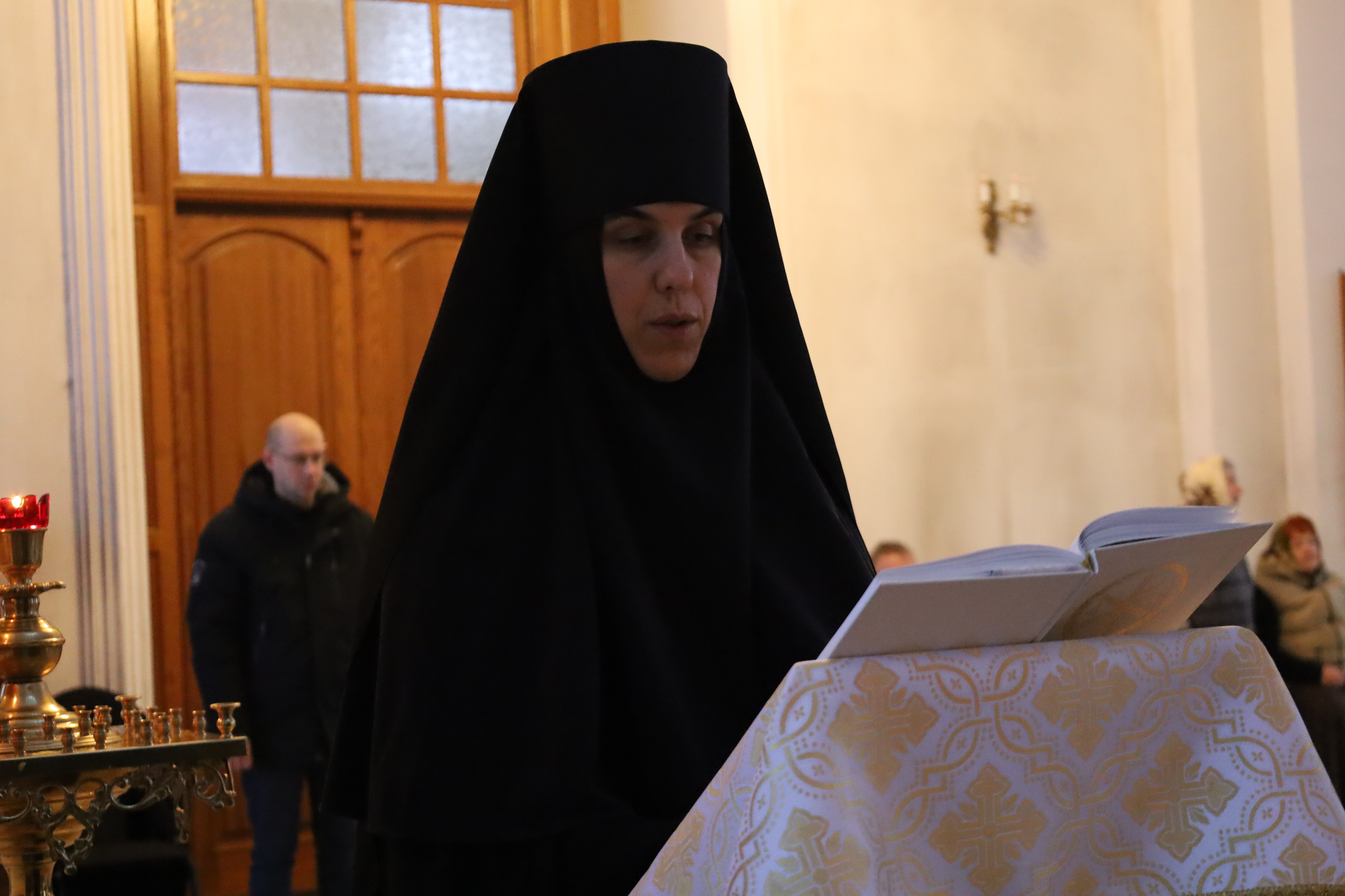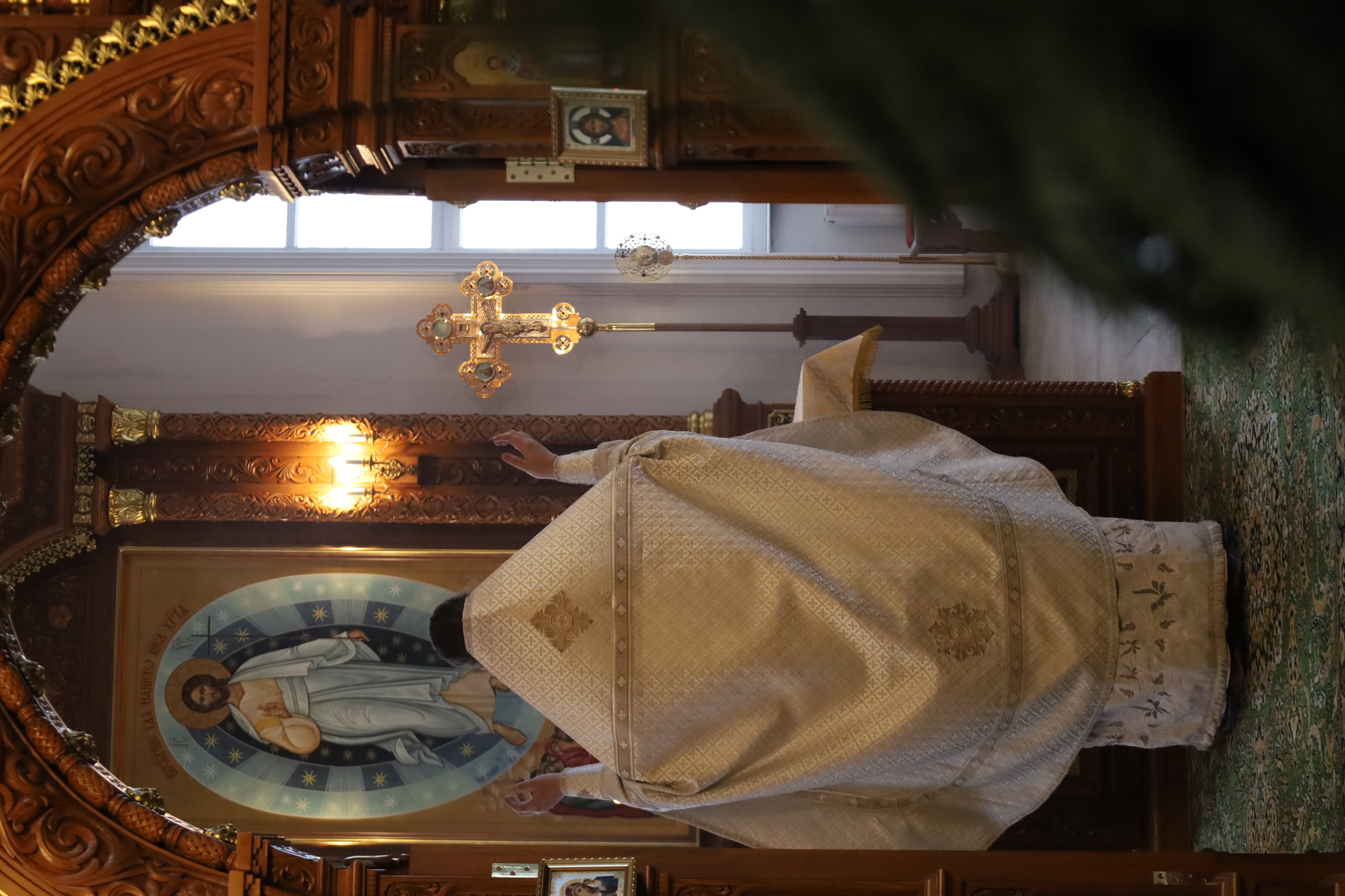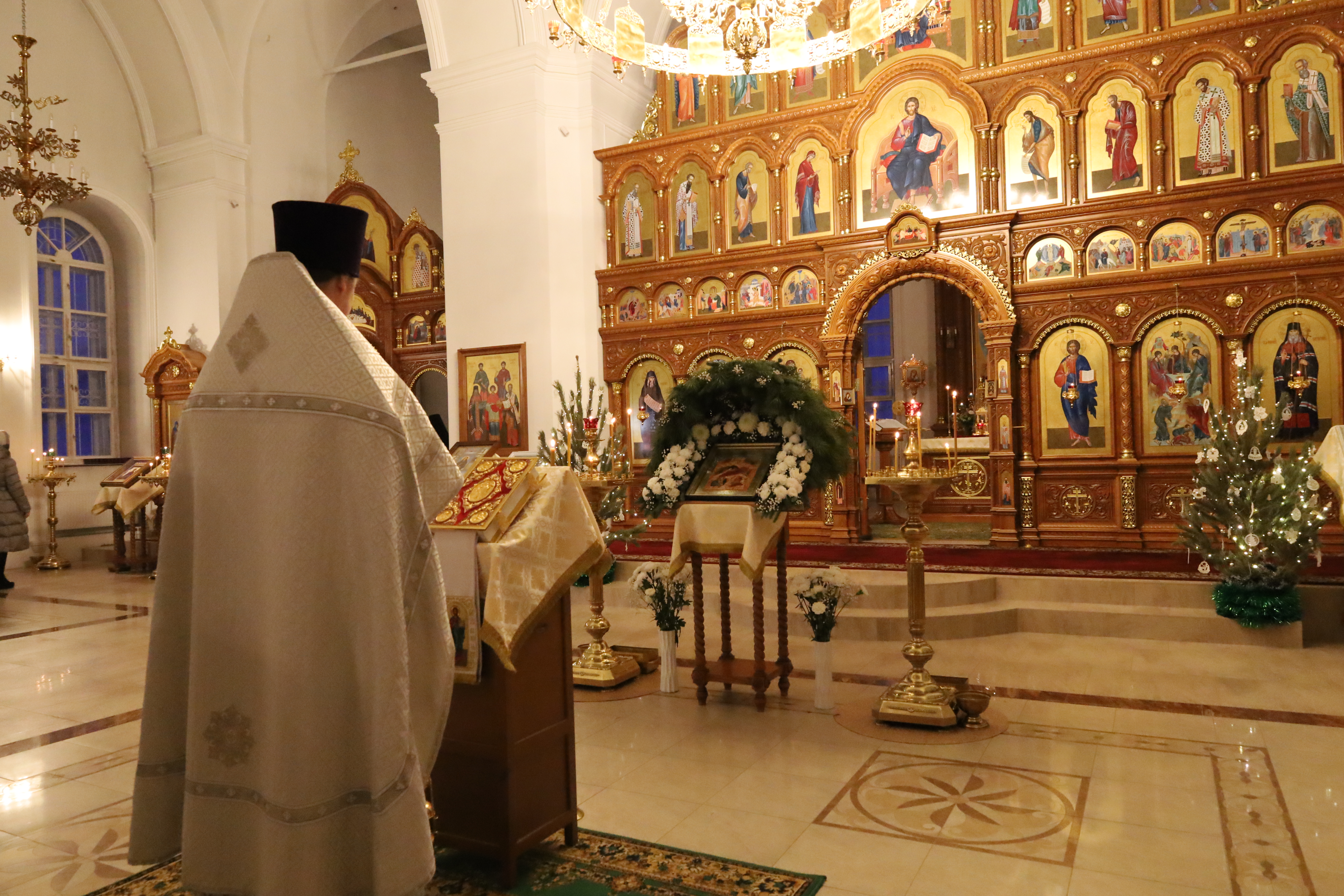 По окончании литургии в центр храма к праздничной иконе была вынесена зажженная свеча как символ света, путеводящий нас в вечное и Божественное царство. Перед иконой праздника священнослужители и клир пропели тропарь Рождества Христова.