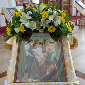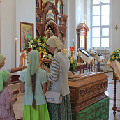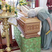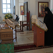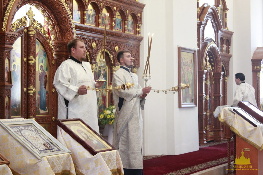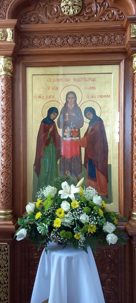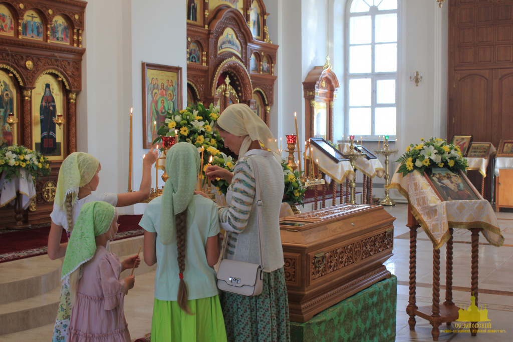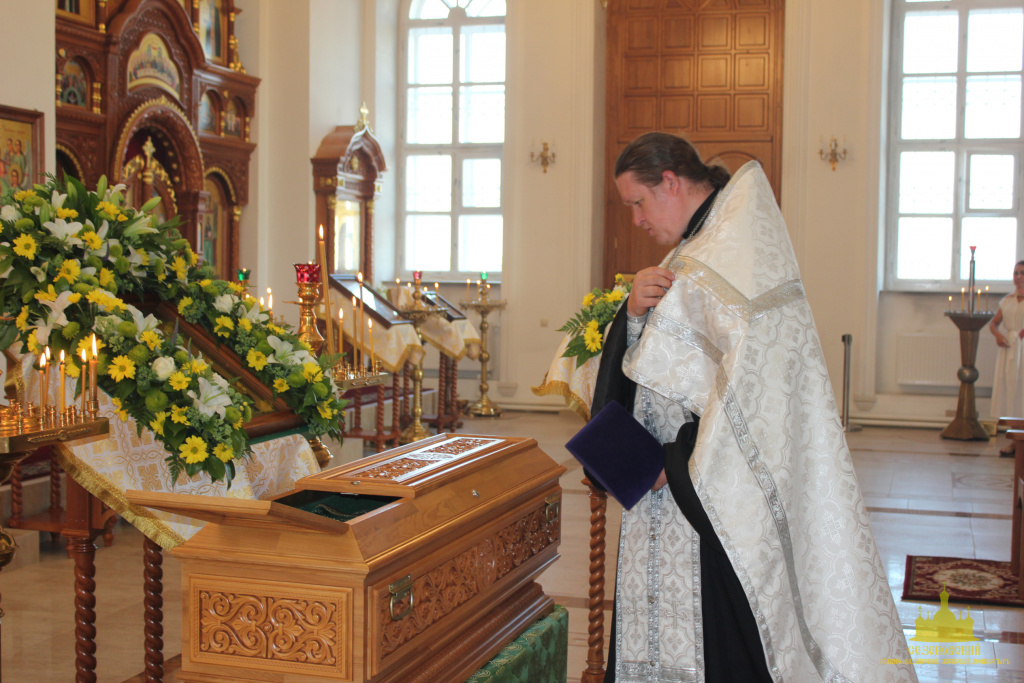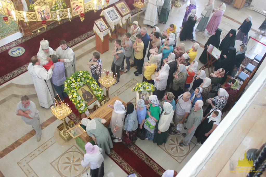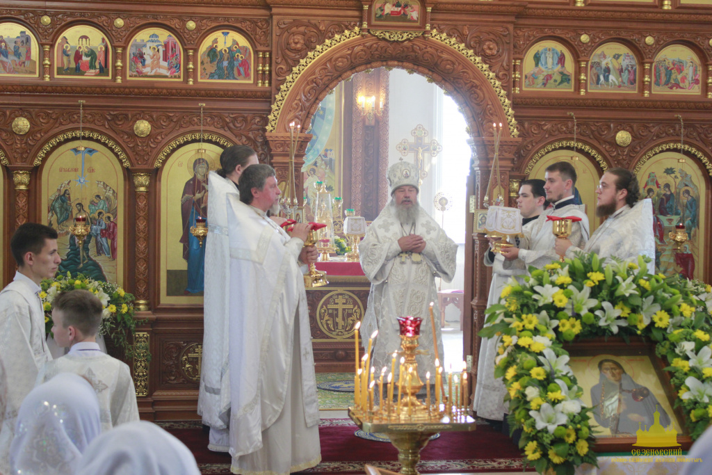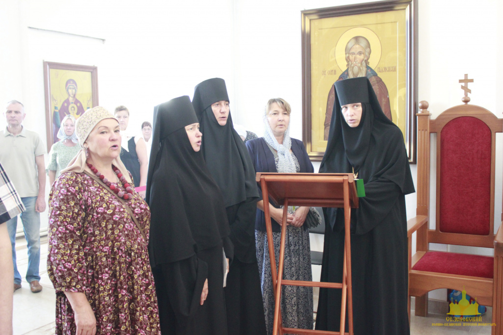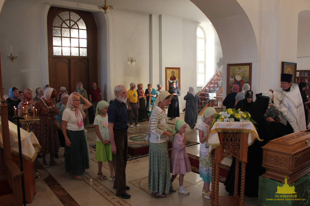 Троицкий собор обители тщательным образом был подготовлен к архиерейскому богослужению. Храм в этот день был украшен особенно торжественно: рака с мощами преподобного Иоанна Сезеновского, икона праздника - Рождества Пророка Иоанна Предтечи, иконы Божией Матери Казанской, преподобных Иоанна, Дарии и Серафимы Сезеновских и другие почитаемые образы были украшены цветами.