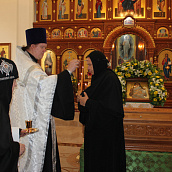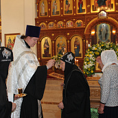По окончании Божественной литургии, по случаю праздника, был совершен праздничный молебен, славление Крестителю Господню Иоанну и преподобному Иоанну, затворнику Сезеновскому.