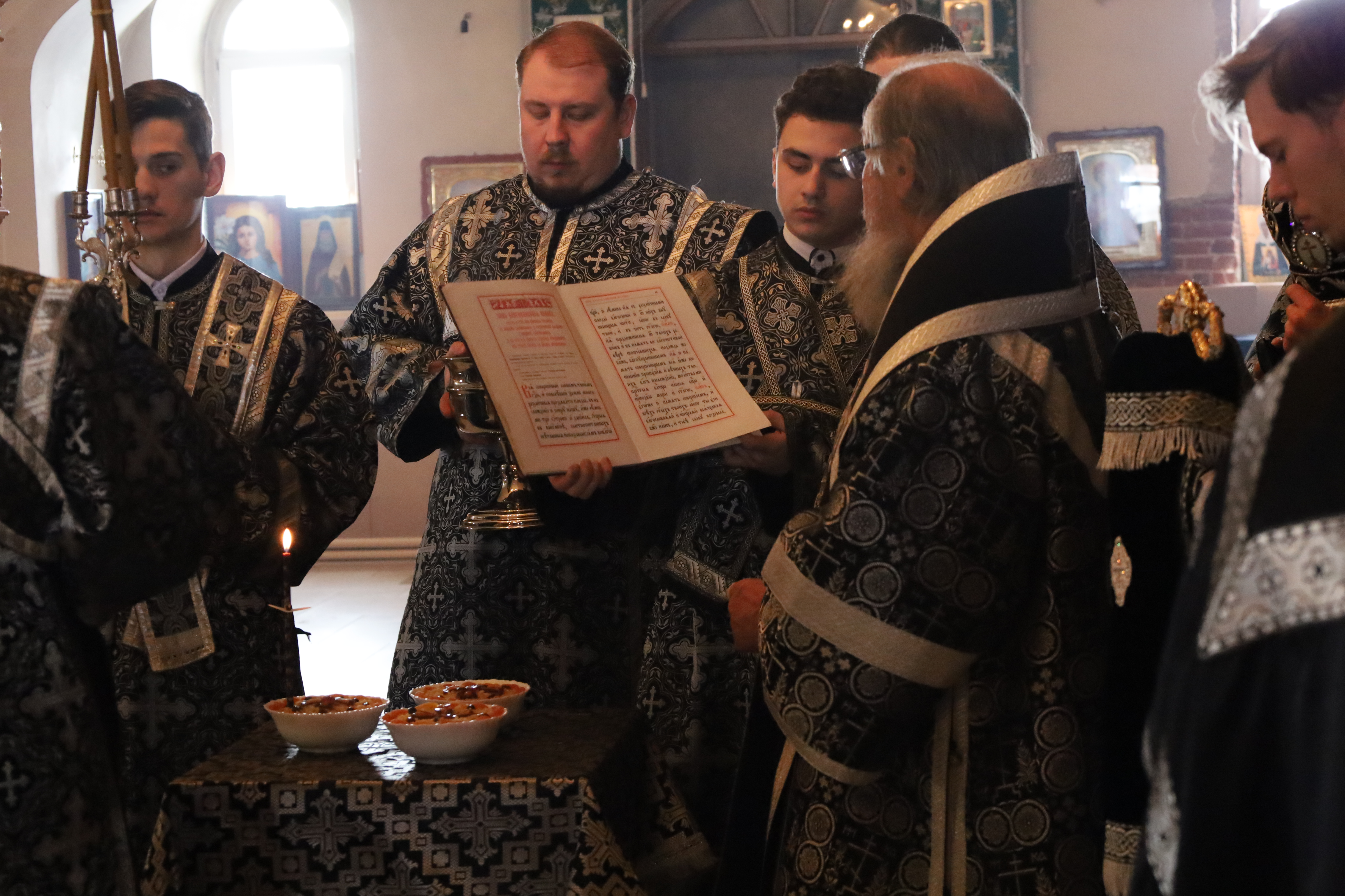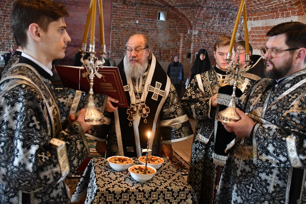 По окончании второй в этом году литургии Преждеосвященных Даров на середину храма выносится сосуд, наполненный зернами, вареными с медом, орехами, сухофруктами, и начинается молебен святому Феодору Тирону. Молебный канон великомученику Феодору Тирону с благословением колива совершил епископ Максим. По окончании молебна коливо, освященное в честь святого Феодора Тирона, раздали верующим.