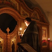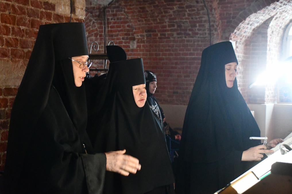 Песнопения исполнял хор сестер под управлением игумении Феофании. Певческая группа под управлением владыки Максима исполнила песнопение «Да исправится молитва моя…».