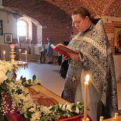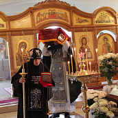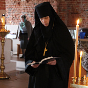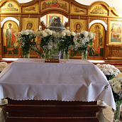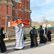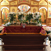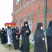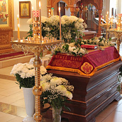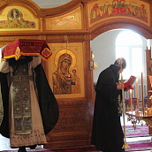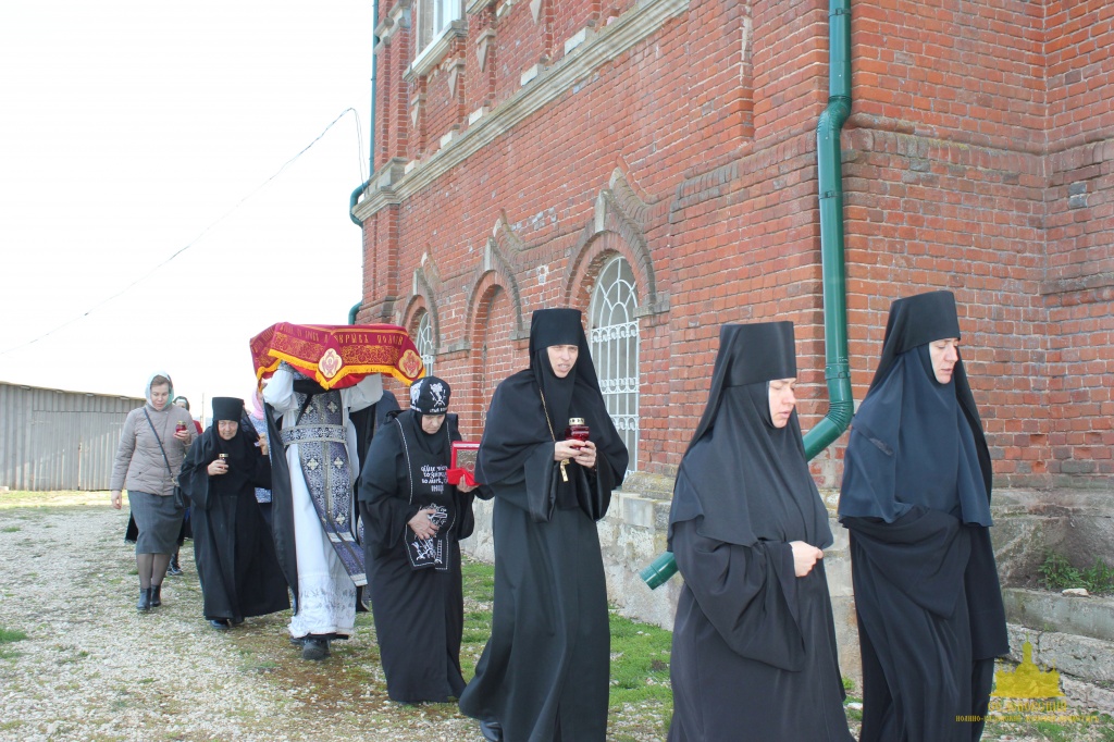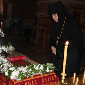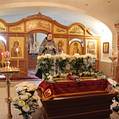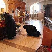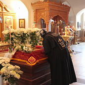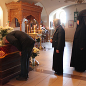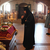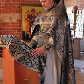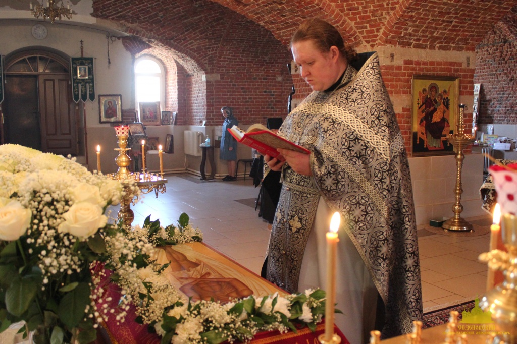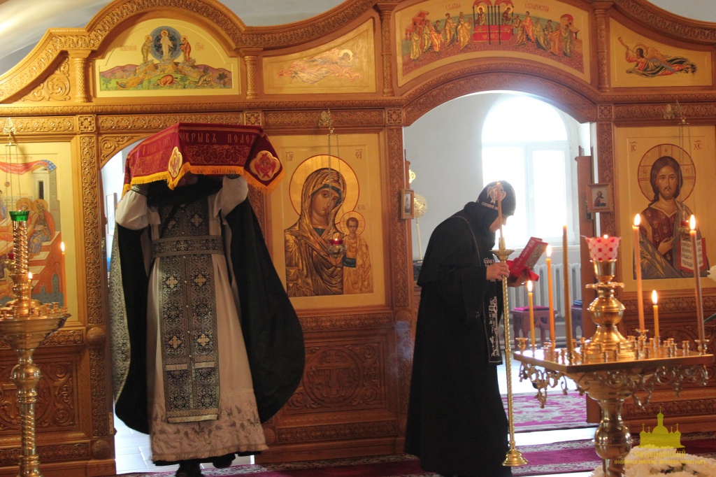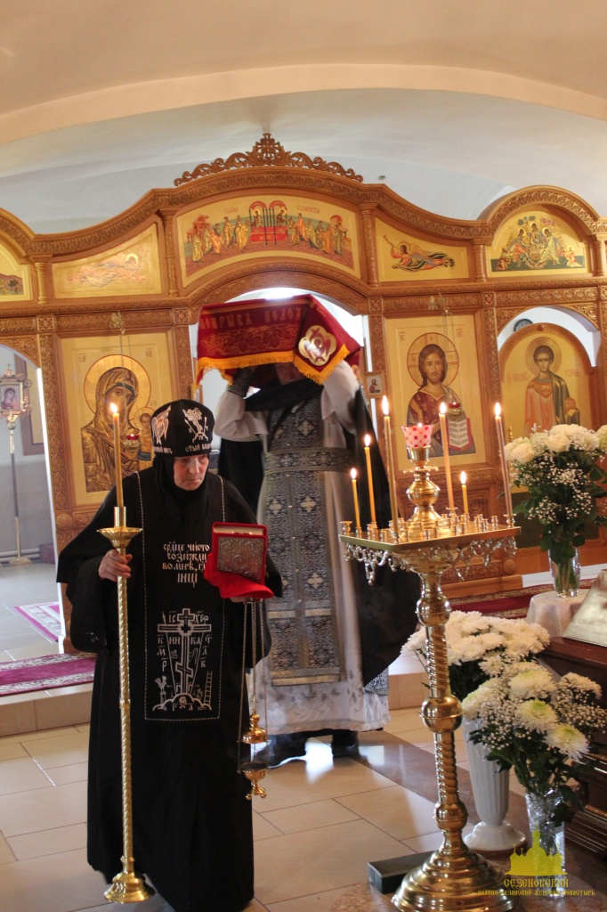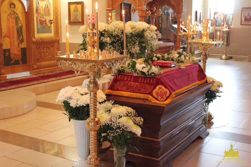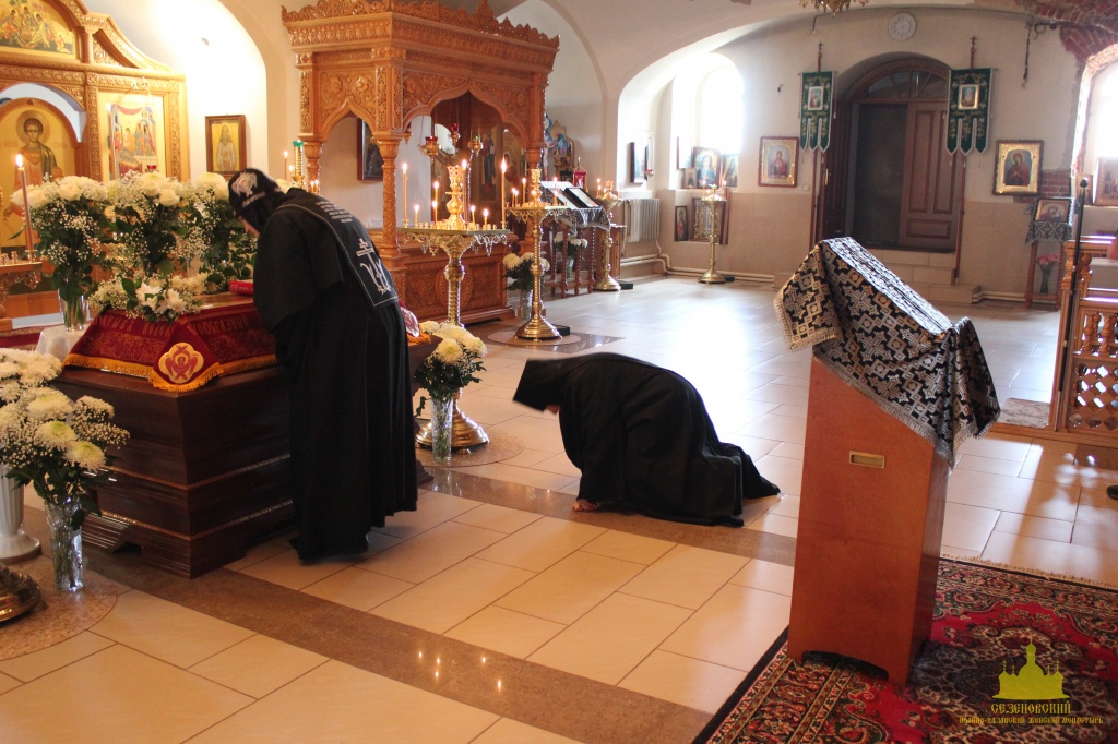 По окончании канона, при пении умилительной стихиры "Приидите, ублажим Иосифа приснопамятного" священник, Матушка игумения и далее все сестры и прихожане приложились к Плащанице Спасителя.