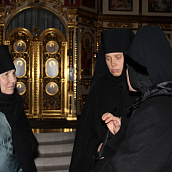 Далее члены Коллегии в сопровождении настоятельницы обители игумении Аркадии (Еньковой) посетили монастырские храмы: Знамения иконы Божией Матери, святителя Димитрия, митр. Ростовского, храм святителя Николая, Мир Ликийских чудотворца, где матушка Аркадия рассказала о главных святынях обители, об истории возникновения монастыря, его возрождении, об уставе монастырской жизни, также члены Коллегии и сестры посетили могилу затворницы Мелании, где была отслужена заупокойная лития.