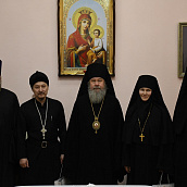 В ходе встречи епископ Максим обсудил с ее участниками вопросы, касающиеся богослужебной, духовной и хозяйственной жизни епархиальных монастырей, также Владыка ознакомил представителей Синодального отдела с ходом развития монашеской жизни в епархии.