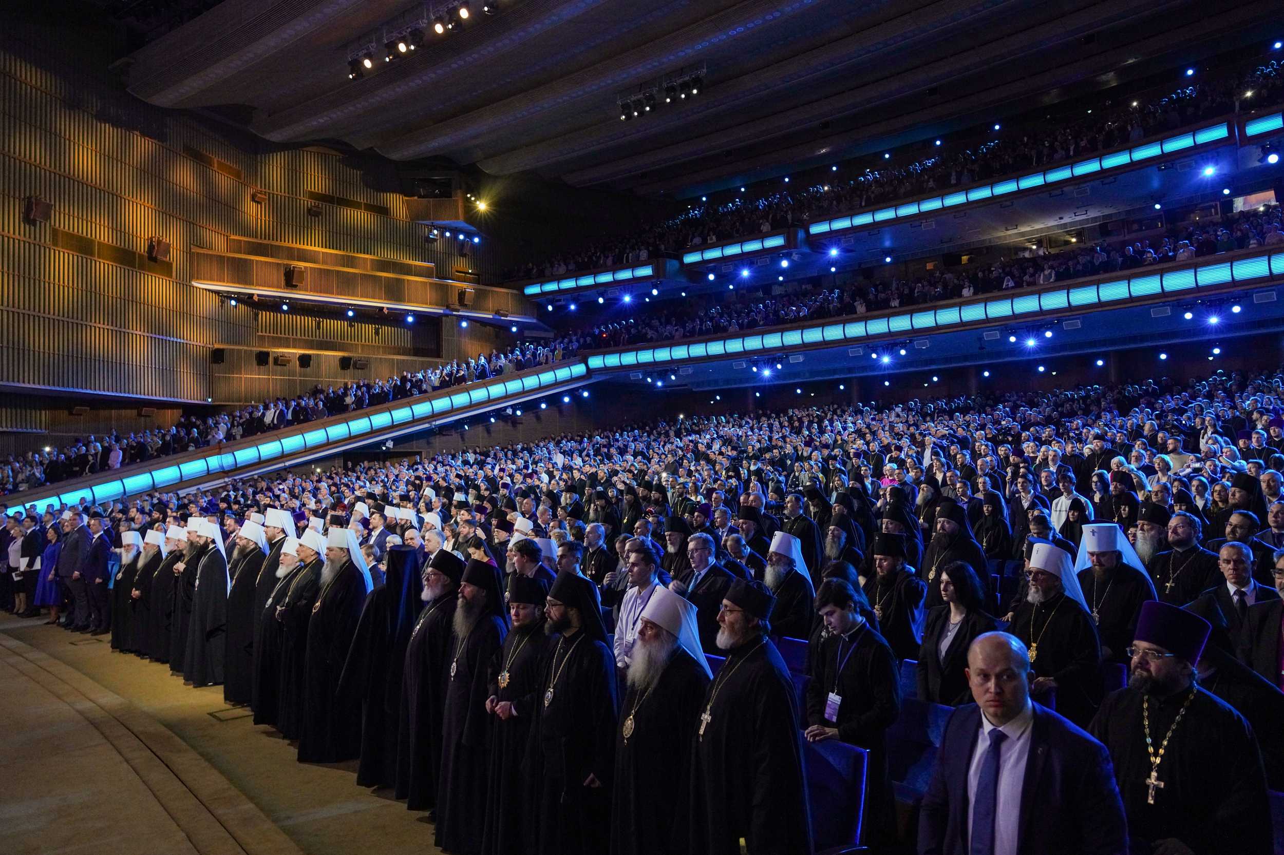 В 16.00 в Концертном зале Кремлевского дворца под председательством Святейшего Патриарха открылось пленарное заседание Чтений.