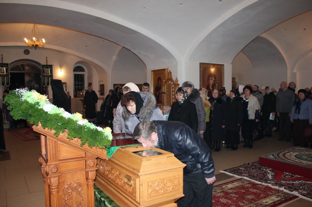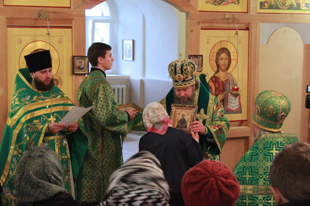 Преосвященнейший Владыка поблагодарил матушку игумению за понесенные труды и преподнес в дар монастырю напрестольное евангелие. Также Владыка особо отметил потрудившихся ради святой обители благодетелей и прихожан и преподнес им в качестве памятного подарка иконы. В конце богослужения Преосвященнейший Максим епископ Елецкий и Лебедянский благословил всех собравшихся иконками прп. Иоанна Сезеновского, а самым маленьким богомольцам раздал сладости.