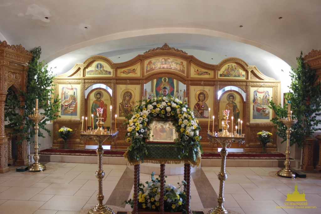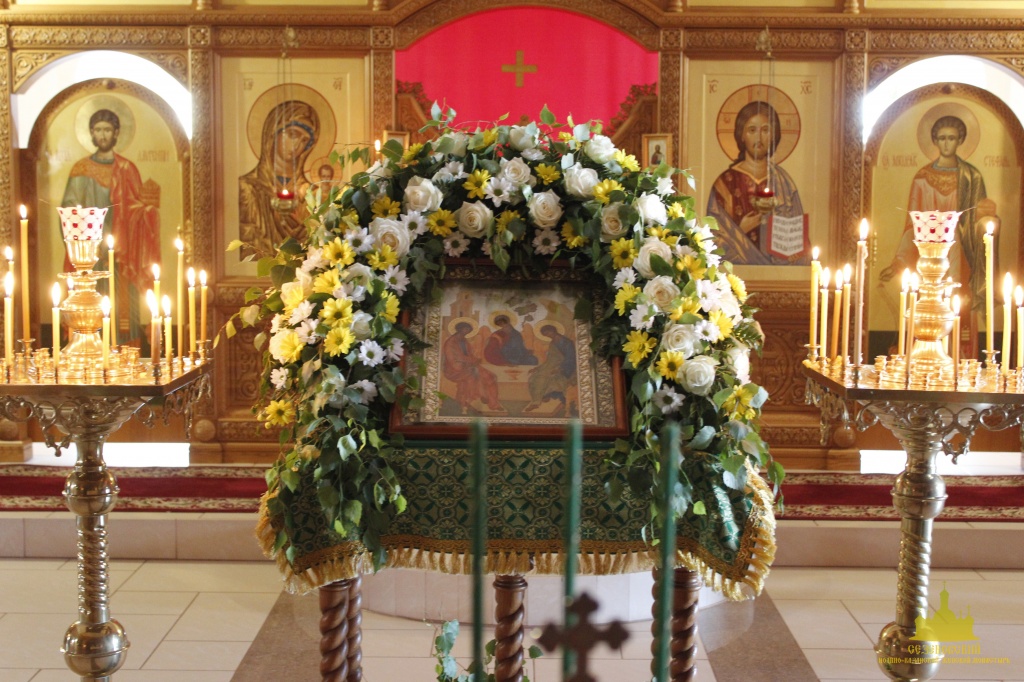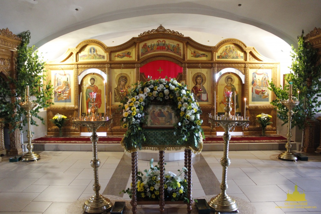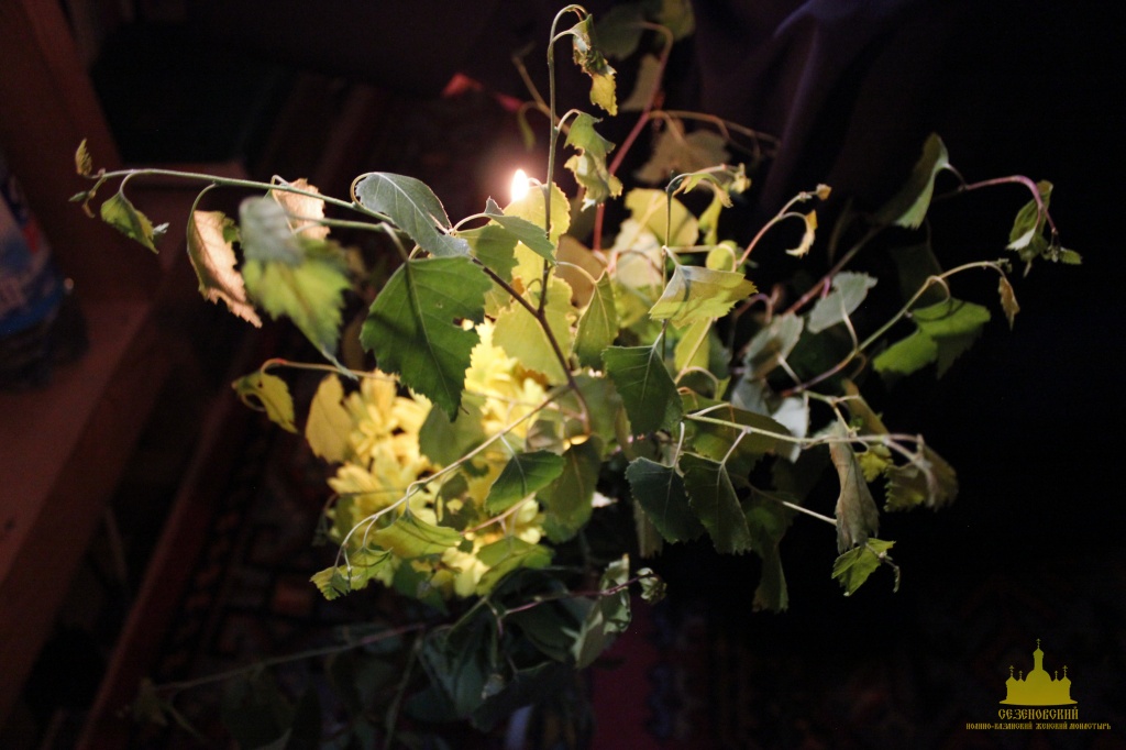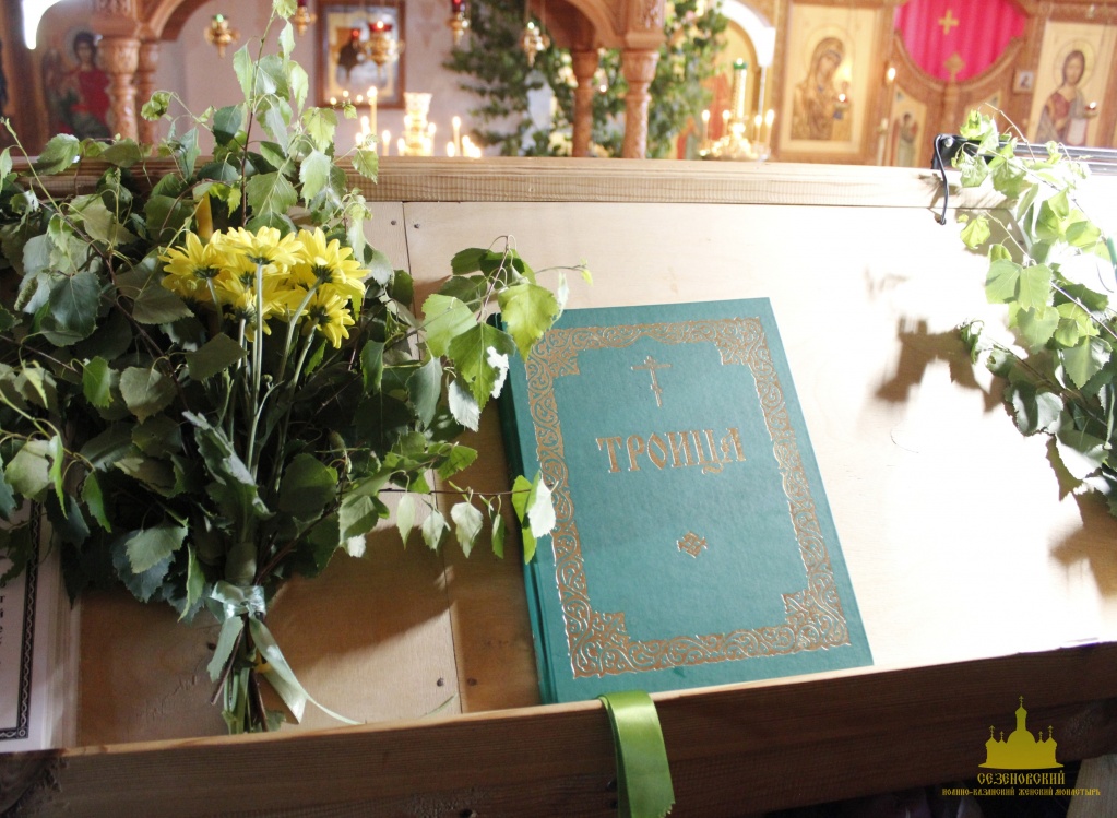 К празднику Святой Троицы сестры украшают березами и цветами храм обители; ещё с апостольских времен такой обычай распространился по всей Церкви. Эти древесные украшения в храмах и домах на Троицу напоминают верующим священную Мамврийскую дубраву, где некогда Патриарху Аврааму под видом трёх странников явился Триединый Бог. Вместе с тем, живые ветви и цветы, как начатки возобновляющейся весны, приносятся в благодарность Господу за то, что Он снова послал весну и оживил природу, служат символом Церкви Христовой, которая с явлением в ней благодати Святого Духа процвела, как древо листьями, ликами святых, и указывают на обновление людей зиждительной силою сошедшего Животворящего Духа.