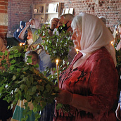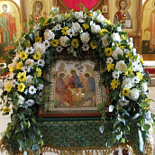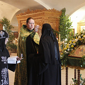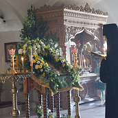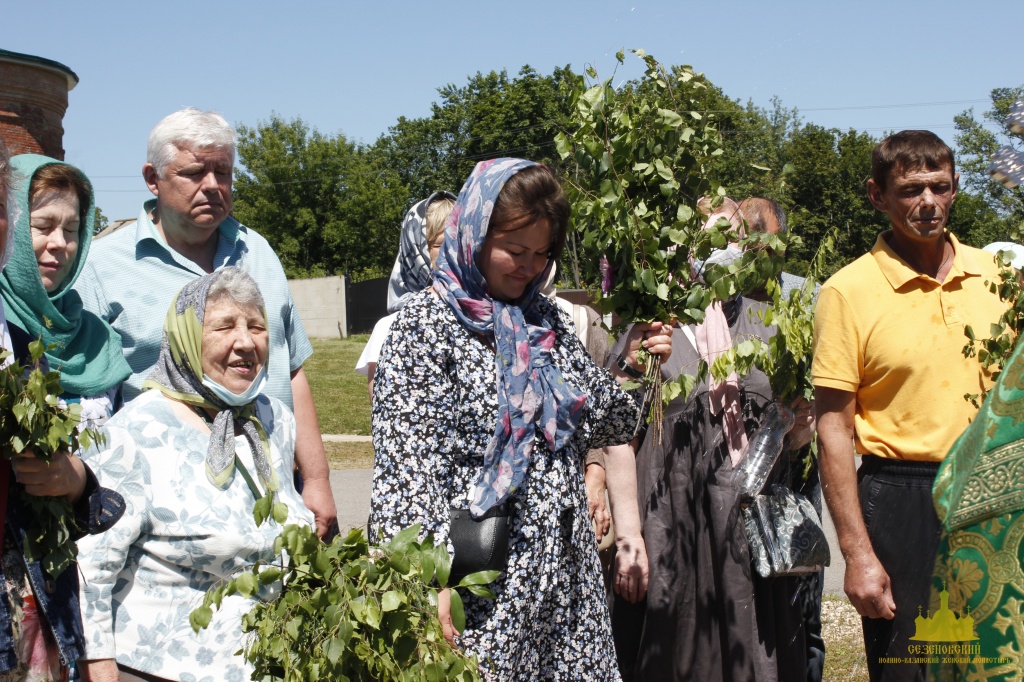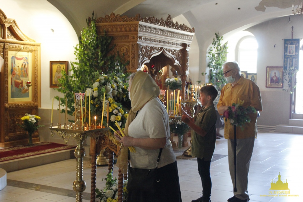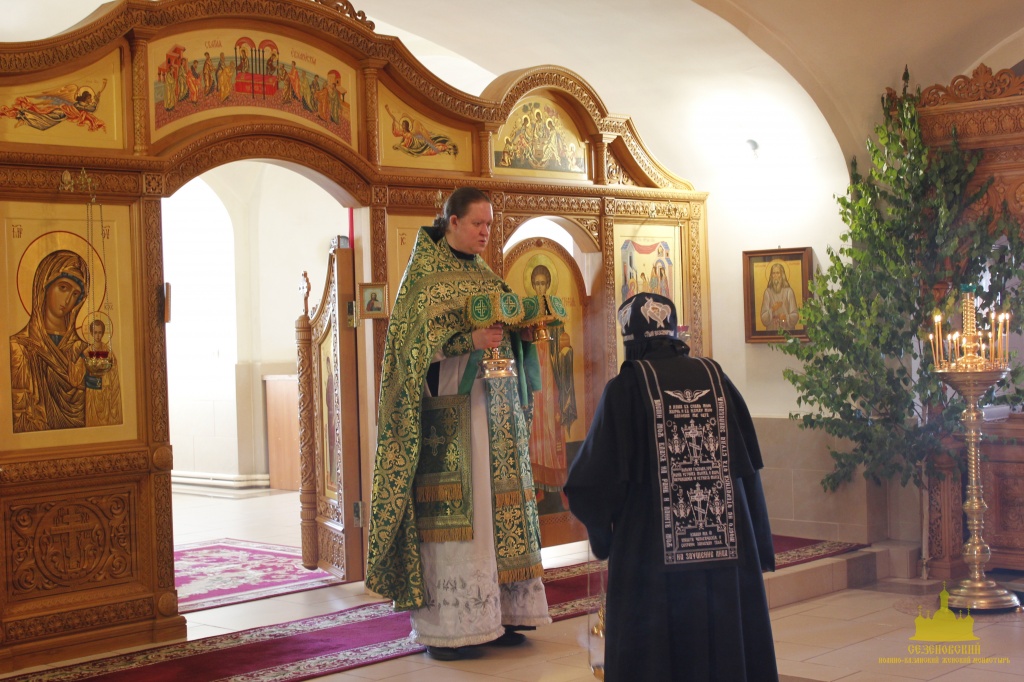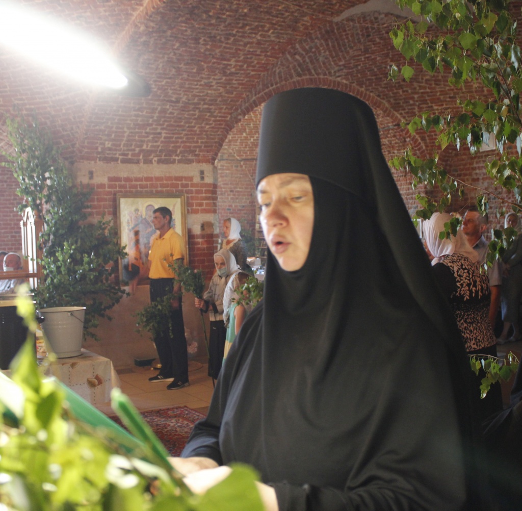 К празднику Святой Троицы сестры украшают березами и цветами храм обители; ещё с апостольских времен такой обычай распространился по всей Церкви. Эти древесные украшения в храмах и домах на Троицу напоминают верующим священную Мамврийскую дубраву, где некогда Патриарху Аврааму под видом трёх странников явился Триединый Бог. Вместе с тем, живые ветви и цветы, как начатки возобновляющейся весны, приносятся в благодарность Господу за то, что Он снова послал весну и оживил природу, служат символом Церкви Христовой, которая с явлением в ней благодати Святого Духа процвела, как древо листьями, ликами святых, и указывают на обновление людей зиждительной силою сошедшего Животворящего Духа.