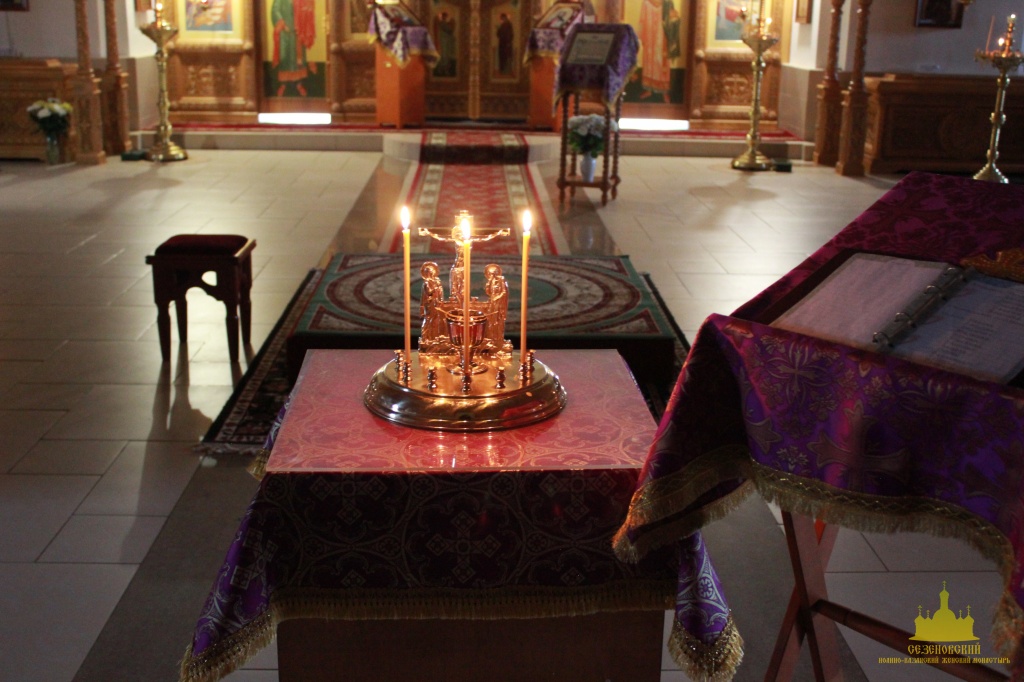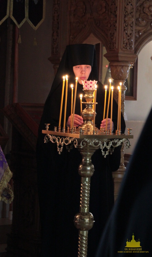Неспешное, проникновенное чтение часов, изобразительных, паремий на вечерне, пение "Да исправится молитва моя...", чтение Апостола и Евангелия, тихое монашеское пение, мягкое мерцание свечей в темном пространстве храма, коленопреклонения и прошения о милости Божией, — все это наполняло сердца молящихся особой благодатной силой.