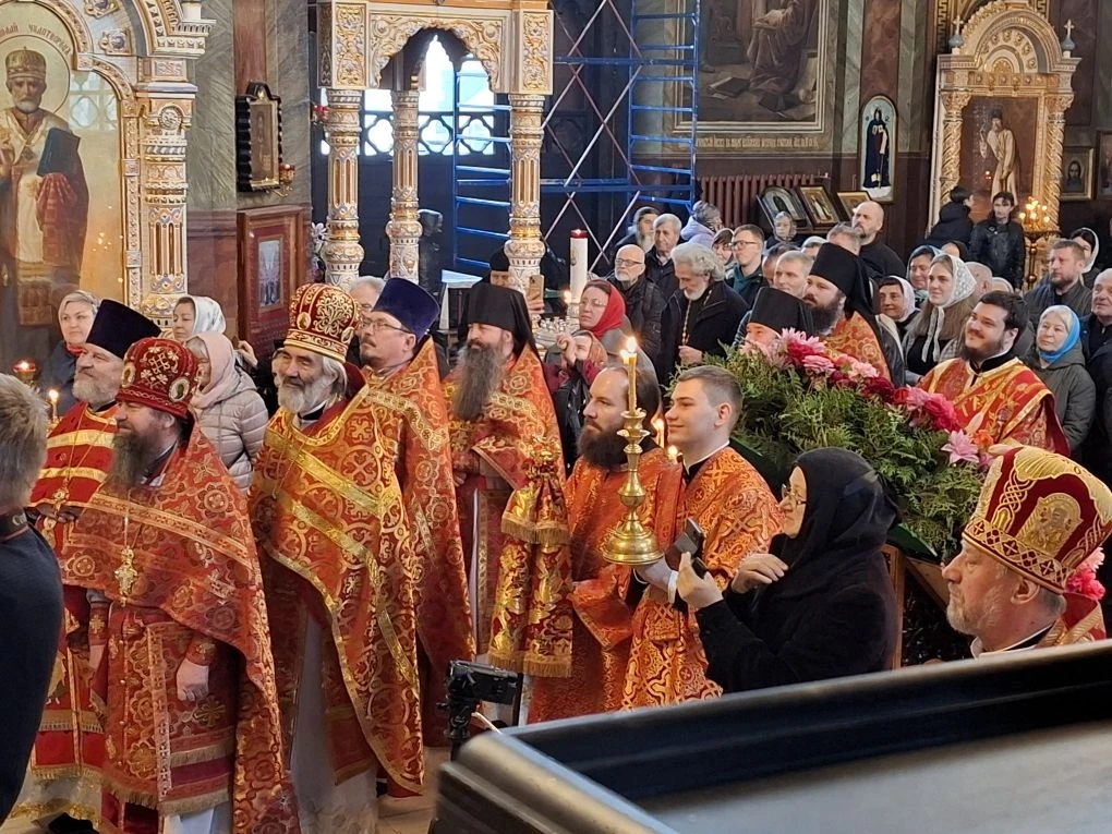 По окончании богослужения Владыка Арсений обратился к присутствующим с архипастырским словом и призвал на всех Божие благословение. Владыка Максим поздравил митрополита Арсения, схимитрополита Никона (Васина) и епископа Евфимия с праздником Светлого Христова Воскресения и преподнес пасхальные яйца и подарки.