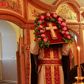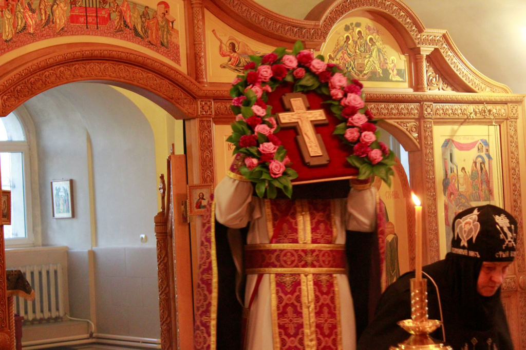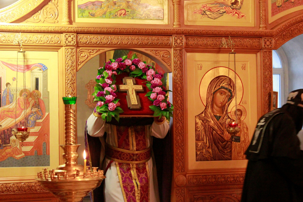 На всенощном бдении вечером, 18 марта, после Великого Славословия, клирик Сезеновской обители иерей Артемий Зиборов торжественно вынес украшенный цветами Крест на середину храма Рождества Пресвятой Богородицы. Всю следующую седмицу до пятницы, 24 марта, Крест будет находится в центре храма для поклонения верующим, когда перед Божественной литургией снова будет внесен в алтарь.
