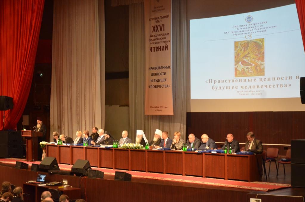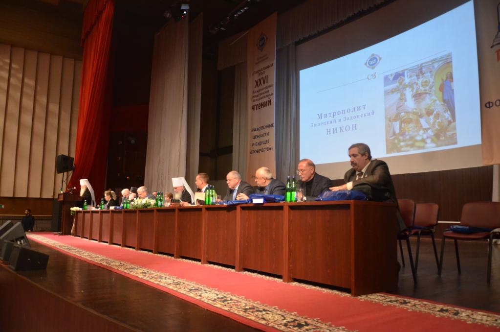 С приветственными словами к участникам чтений обратились члены президиума: митрополит Липецкий и Задонский Никон, глава Липецкой митрополии, митрополит Калужский и Боровский Климент, председатель Издательского совета Русской Православной Церкви, Никонов Александр Николаевич заместитель главы администрации Липецкой области, заместитель председателя Липецкого областного Совета депутатов Мурузов Василий Христофорович, заместитель председателя Синодального отдела религиозного образования и катехизации игумен Митрофан (Шкурин) и другие. Приветственное слово от имени епископа Елецкого и Лебедянского Максима, озвучил секретарь Елецкой епархии протоиерей Александр Дорофеев. Далее прозвучал блок пленарных докладов. По завершении пленарного заседания и перерыва на обед началась работа секций.