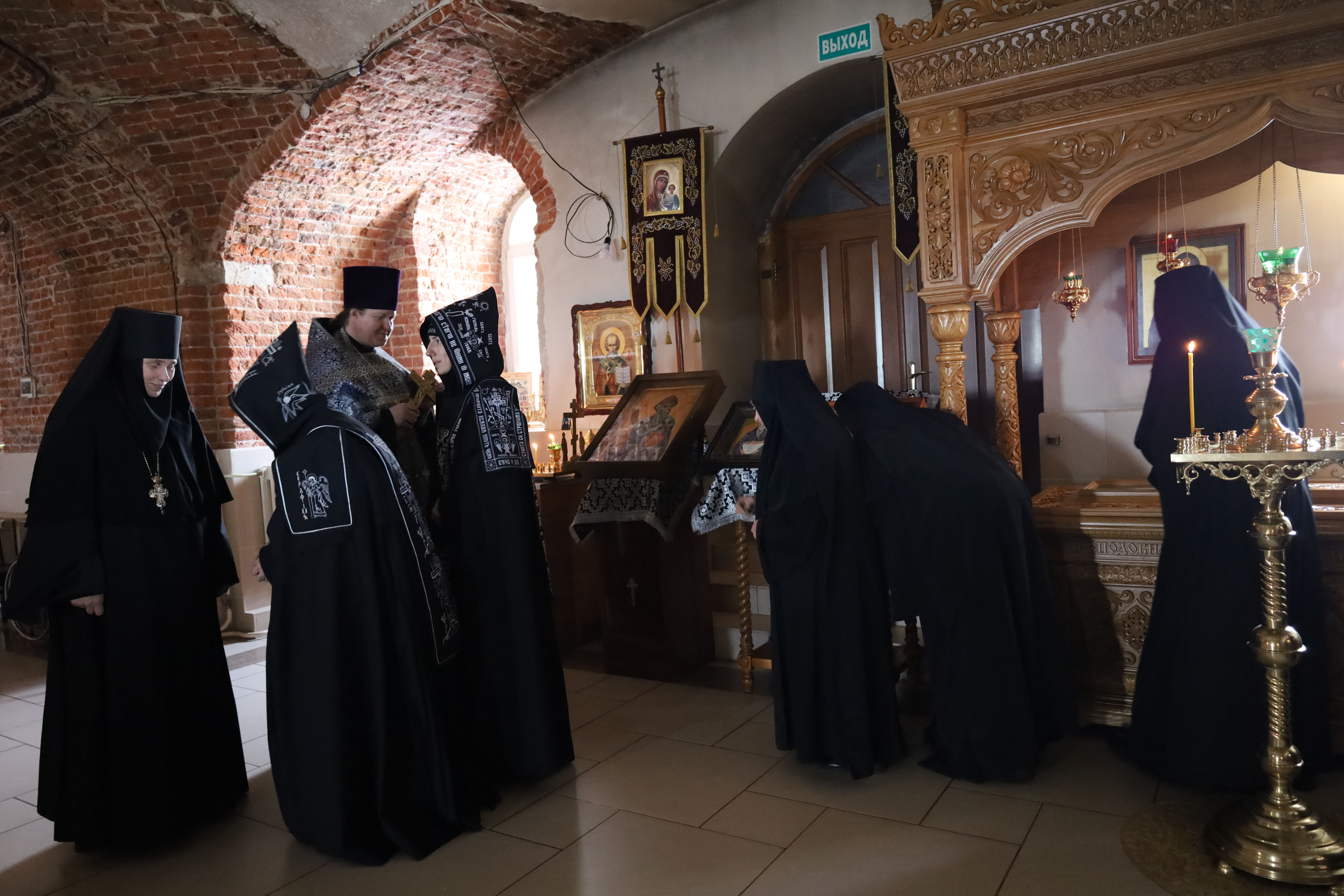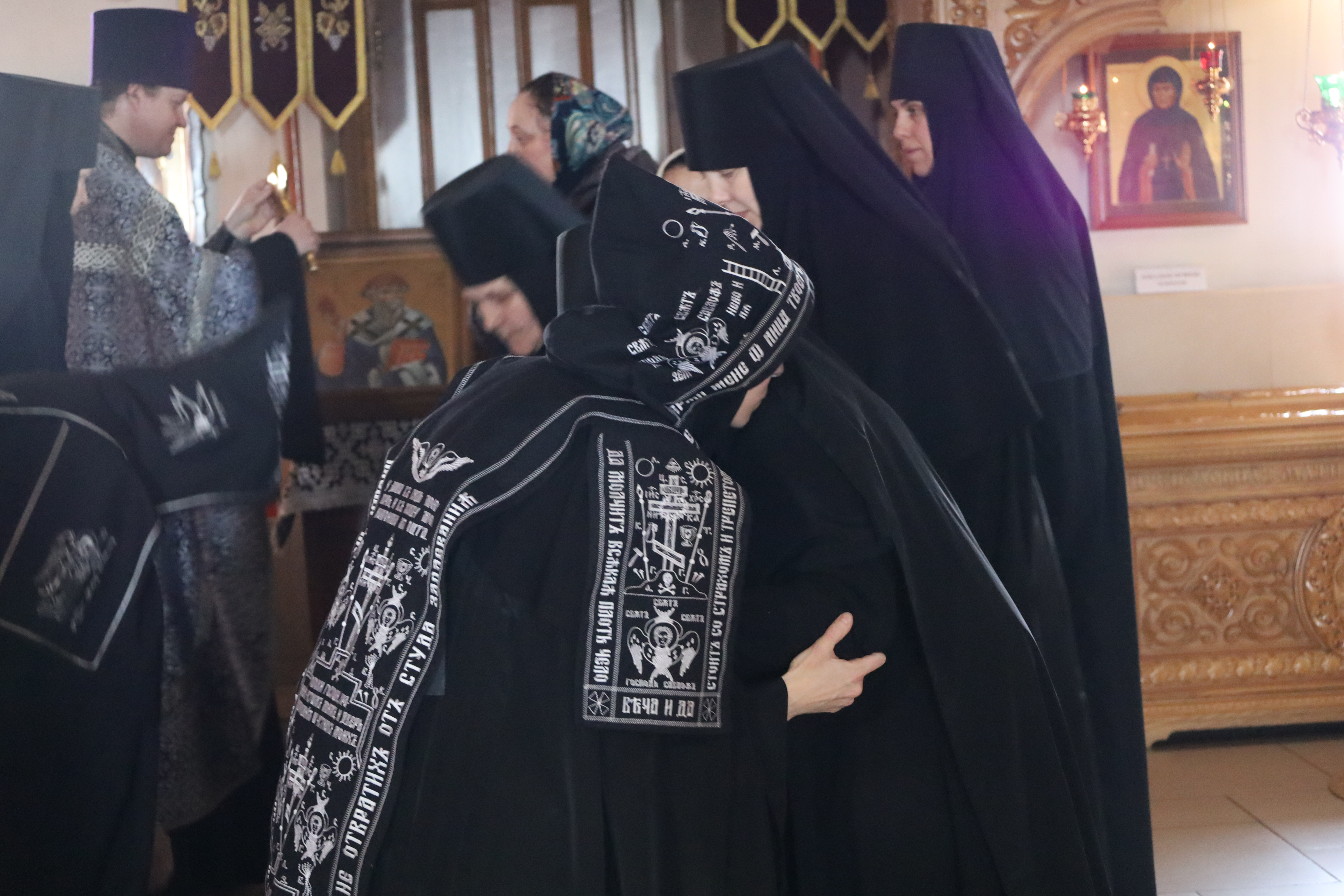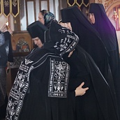 По окончании вечерни клирик обители иерей Артемий Зиборов испросил прощения у Матушки игумении, сестер монастыря и прихожан. Затем все собравшиеся приложились к главным святыням обители – мощам преподобных Иоанна, Дарии и Серафимы Сезеновских, к иконам Спасителя и Пресвятой Богородицы - и с земным поклоном испросили друг у друга прощения. «Христос посреди нас!» – «И есть, и будет!»