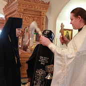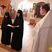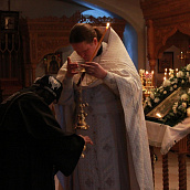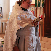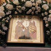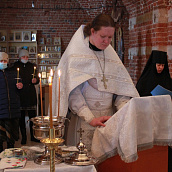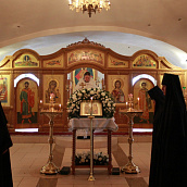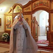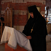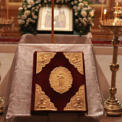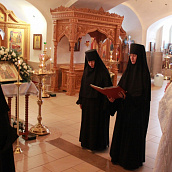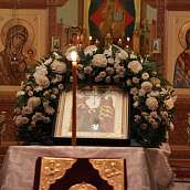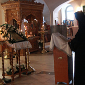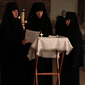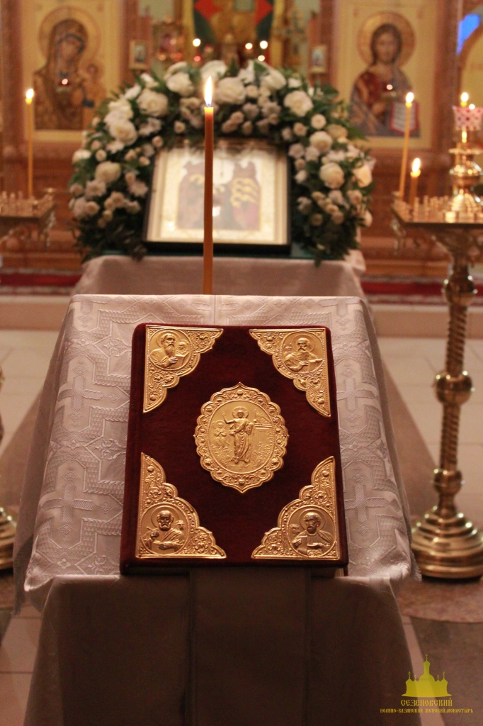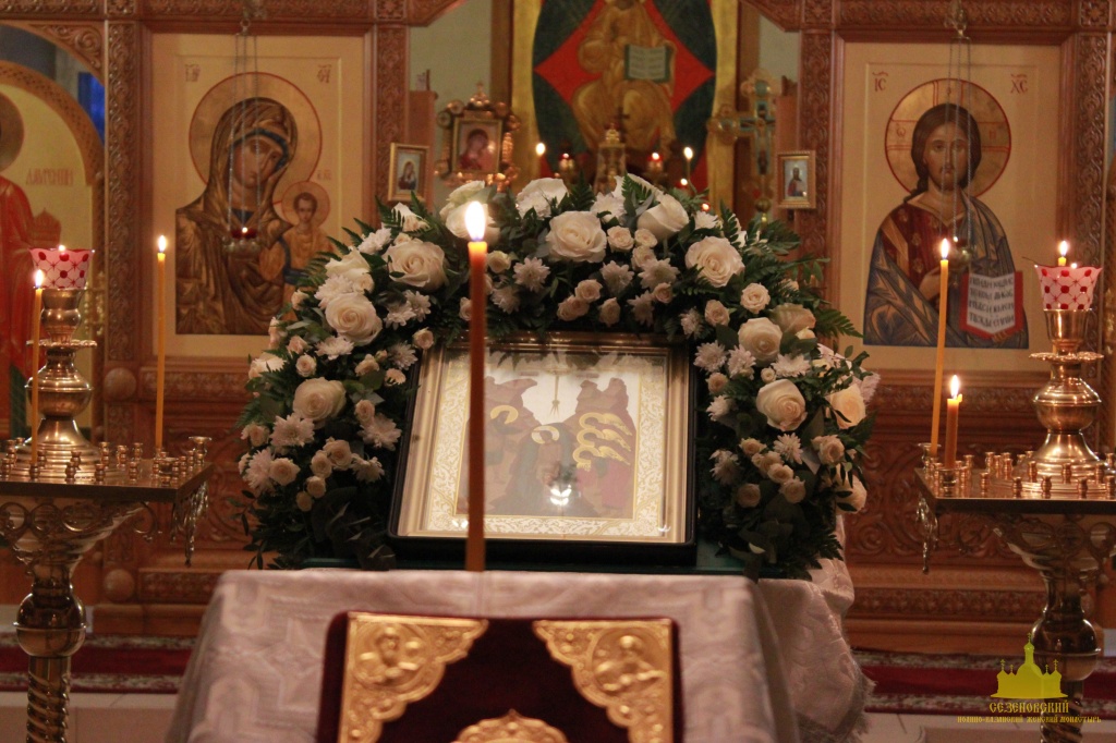 После отпуста посреди церкви поставляется светильник, перед которым духовенство и певчие пропели тропарь и (на Слава, и ныне) кондак праздника.