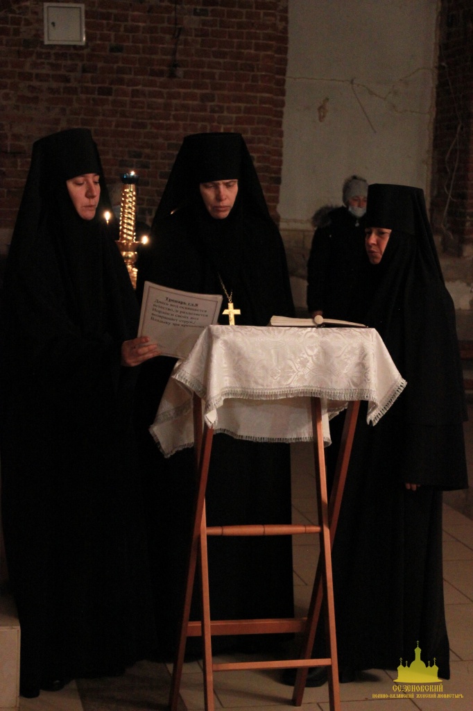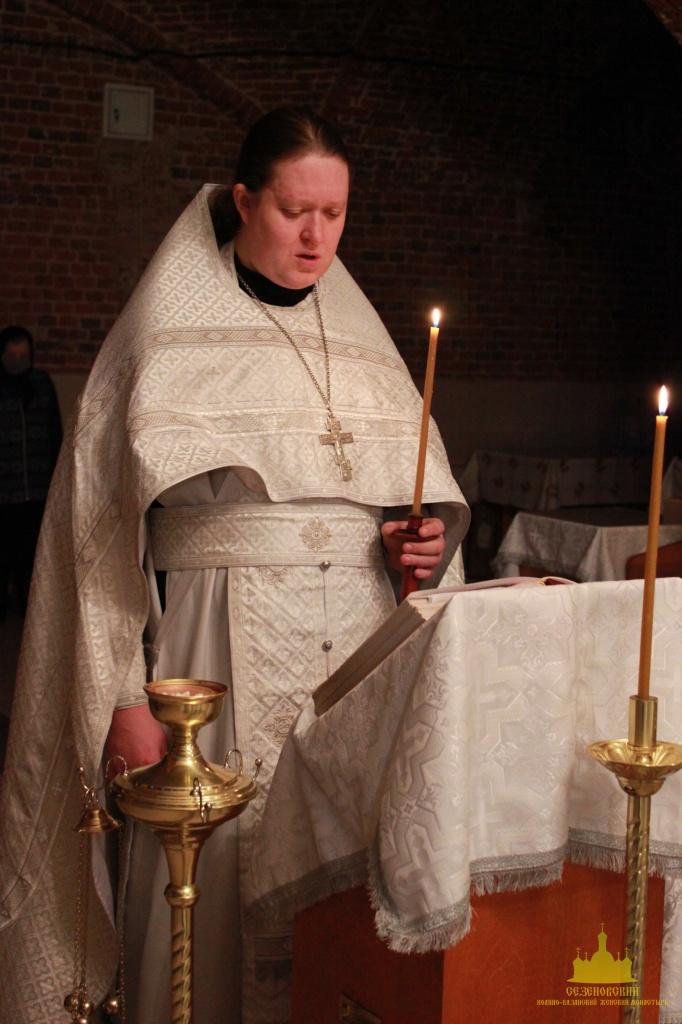В сочельник, в Сезеновском монастыре богослужение началось чтением часов навечерия, с присоединением к ним чина изобразительных и вечерни с Литургией свт. Василия Великого.