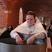 После этого все молящиеся приложились ко Кресту, и священник окропил каждого святой водой.