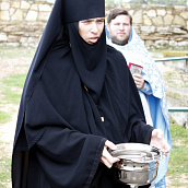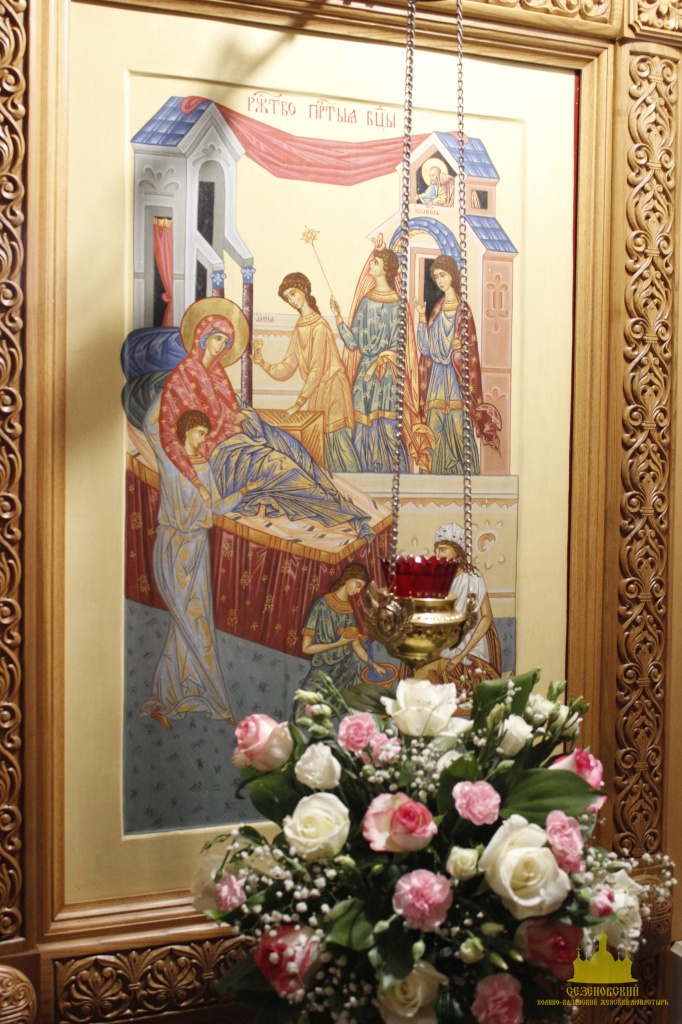 Сегодня, в день престольного праздника, была совершена Божественная Литургия и, по сложившейся традиции, в конце Литургии был отслужен молебен перед праздничной иконой Рождества Пресвятой Богородицы. Праздничное богослужение завершилось крестным ходом вокруг собора. Сегодня сестры, и благочестивые паломники из глубины сердечной возносили моления Пречистой, прославляя Рождество Богоматери, разрешившее от неплодства Ее родителей, молились о разрешении от неплодства наших душ, чтобы и нам не устами только восхвалять преславное Рождество Божией Матери, но и на деле стараться не в себя, а в Бога богатеть, принося плоды святости и жизни вечной.