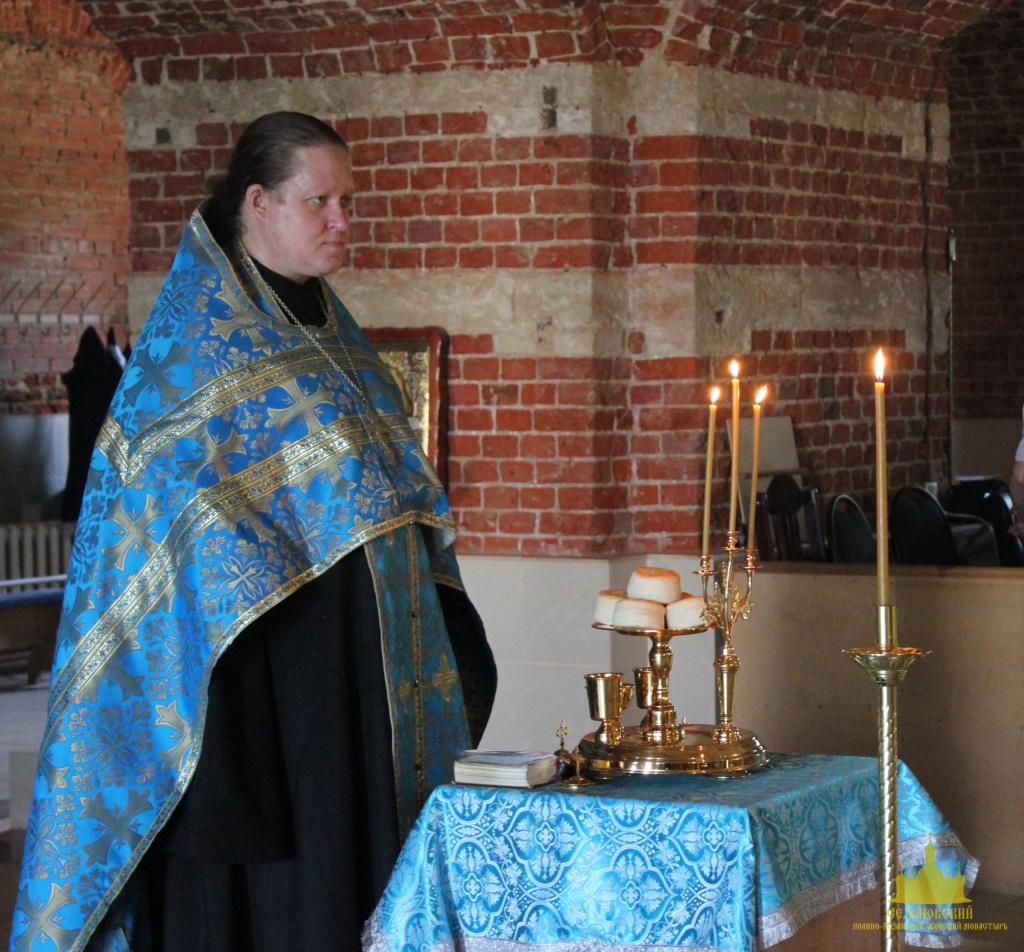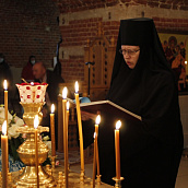 Накануне вечером было отслужено всенощное бдение с литией. В умилительном каноне праздника на утрени (творение прп. Иоанна Дамаскина и свт. Андрея Критского) сестры вместе со святыми воспевали "...вышшую всея твари, Богородицу", сорадовались "Ангельским чинам", ведь в этот день должна "ликовствовать вся тварь", "веселиться небо и радоваться земля", "дерзать и играть безчадныя и неплоды" и вся вселенная "срадоваться богомудренной Анне": "Грядите, вернии, Духом Божественным радующеся, Юже от неплодове днесь пришедшую человеков на спасение Приснодеву Отроковицу песньми почтим".