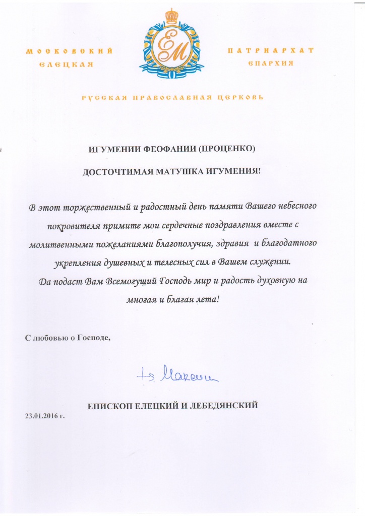 Поздравление матушки игумении с днем тезоименитства.