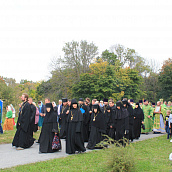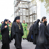 По завершении Божественной литургии был совершен праздничный молебен с крестным ходом вокруг храма и провозглашено многолетие Святейшему Патриарху Московскому и всея Руси Кириллу и Преосвященным архиереям с их богоспасаемой паствой. По окончании богослужения Преосвщенные архиереи возложили букет цветов к памятнику старца Силуана.