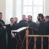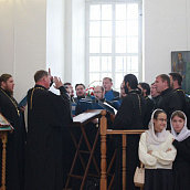 Богослужебные песнопения исполняли хор духовенства Елецкой епархии, регент — иерей Владимир Нескоромный и хор под управлением Елены Баязовой.