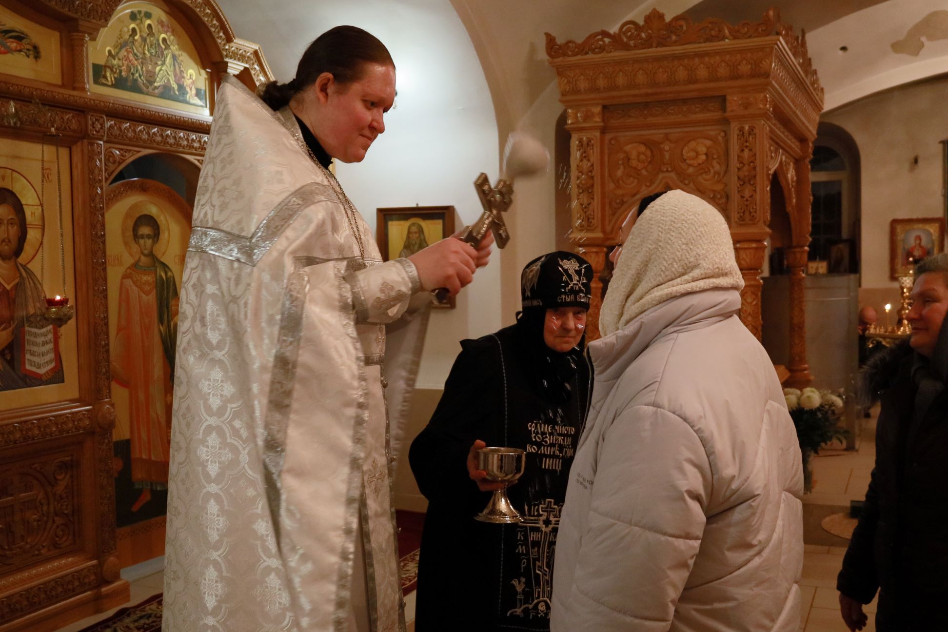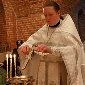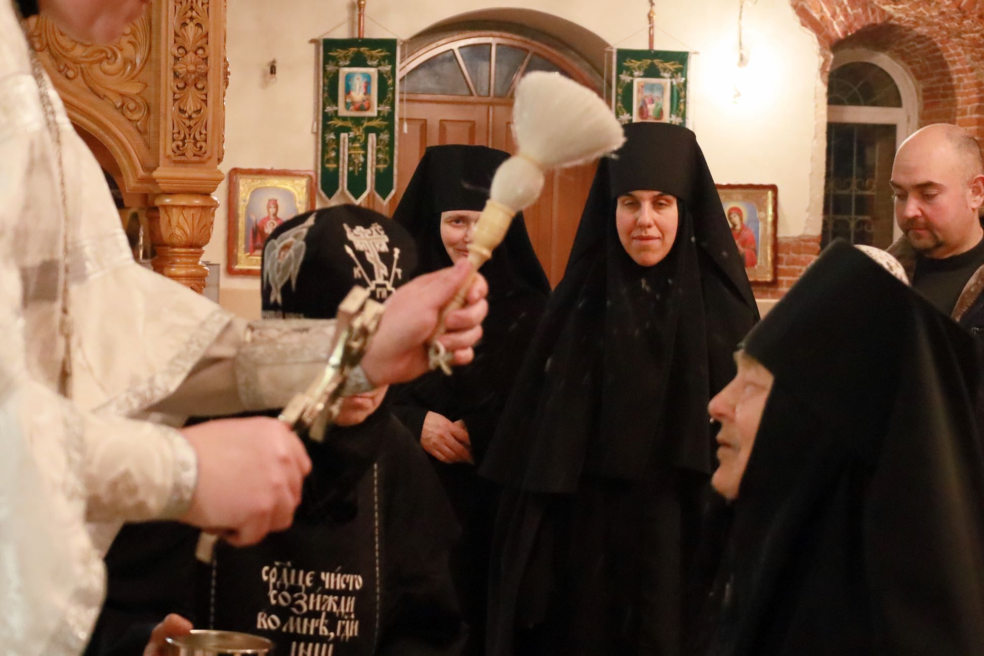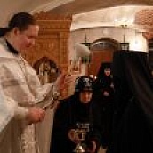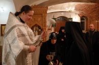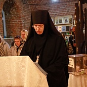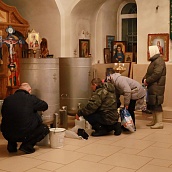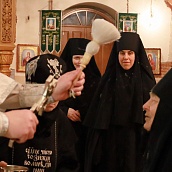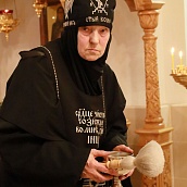 Божественную Литургию в храме Рождества Пресвятой Богородицы совершил клирик обители иерей Артемий Зиборов. По окончании Литургии было совершено Великое освящение воды.
