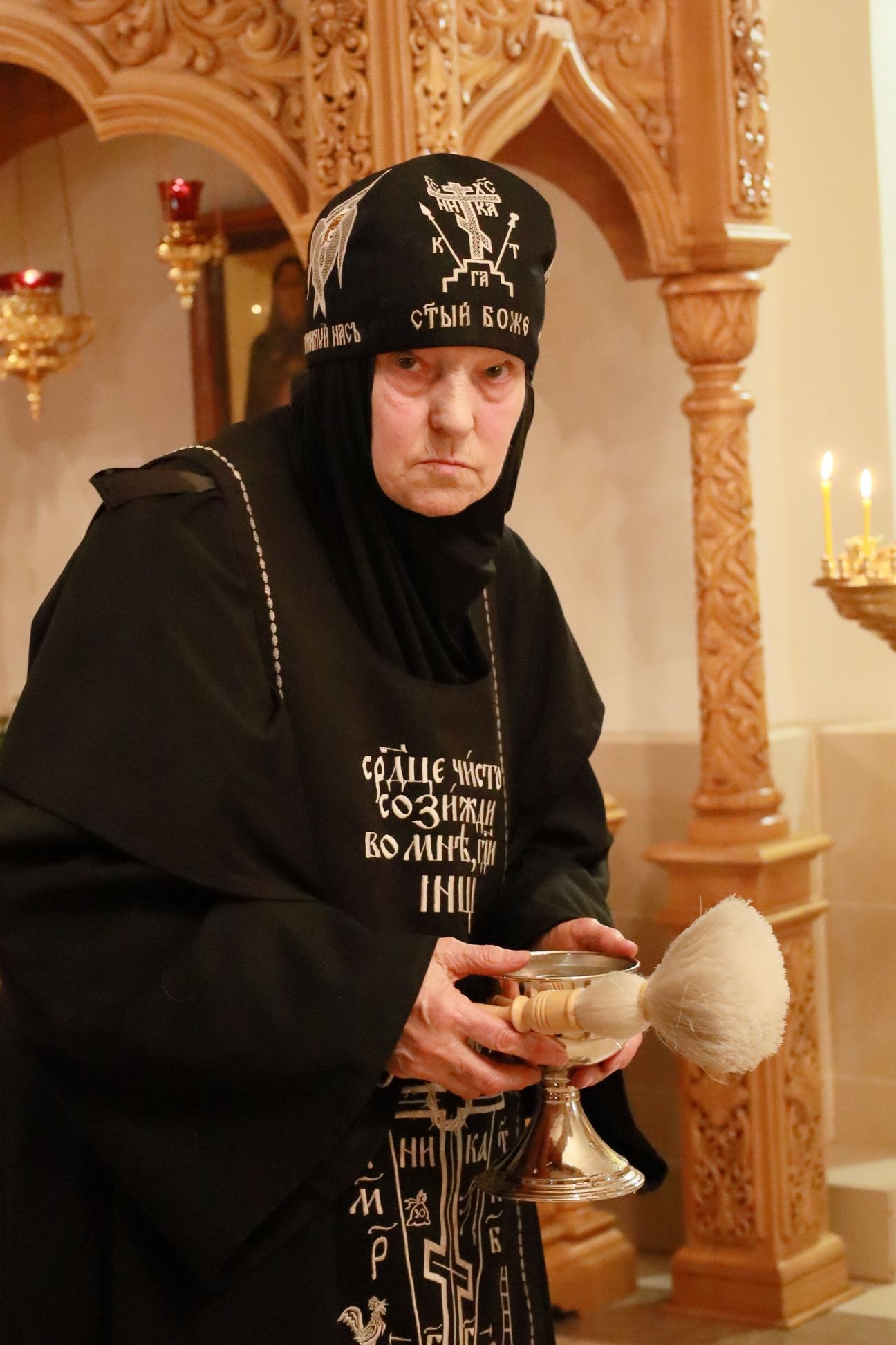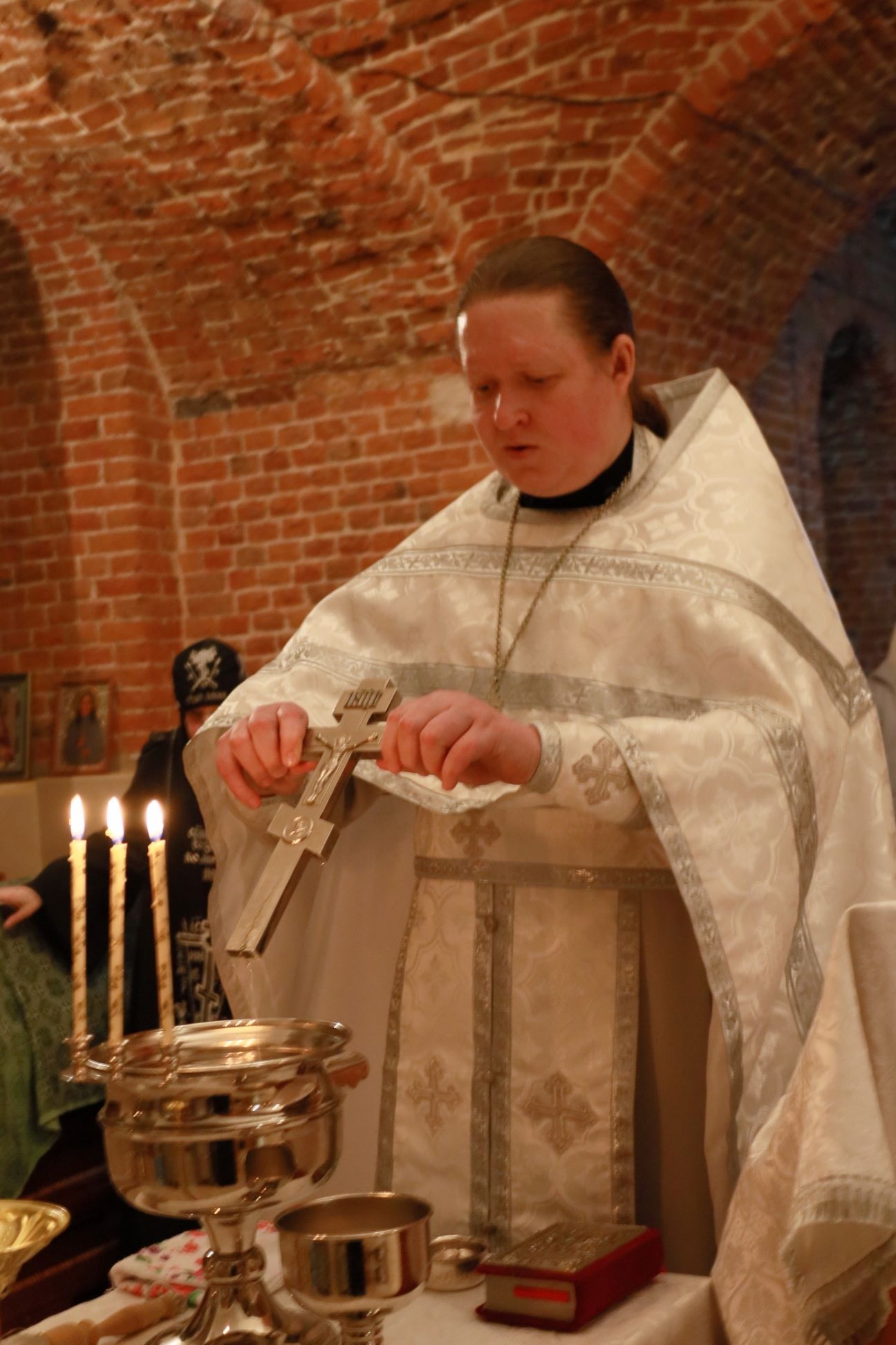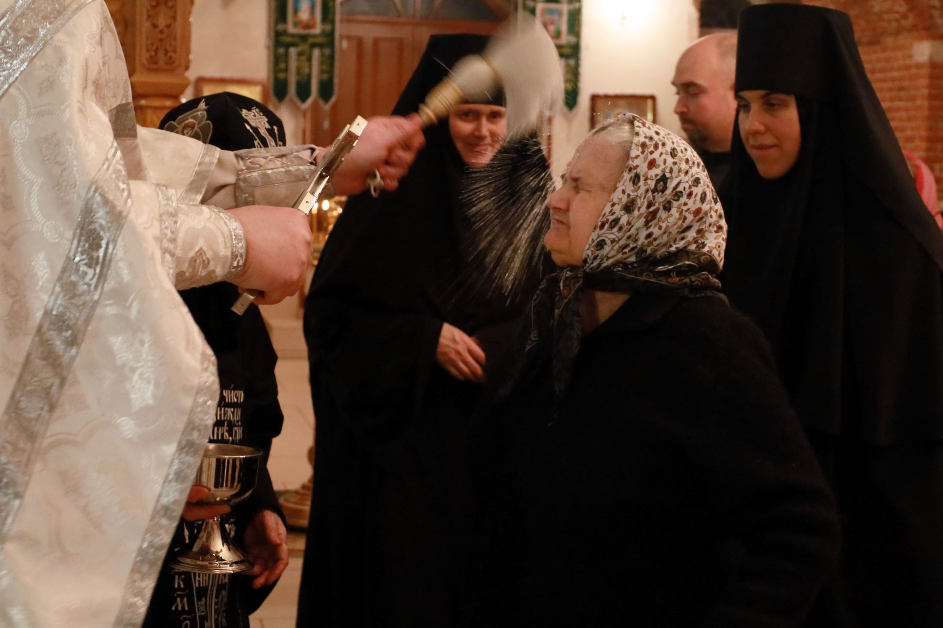 Божественную Литургию в храме Рождества Пресвятой Богородицы совершил клирик обители иерей Артемий Зиборов. По окончании Литургии было совершено Великое освящение воды.