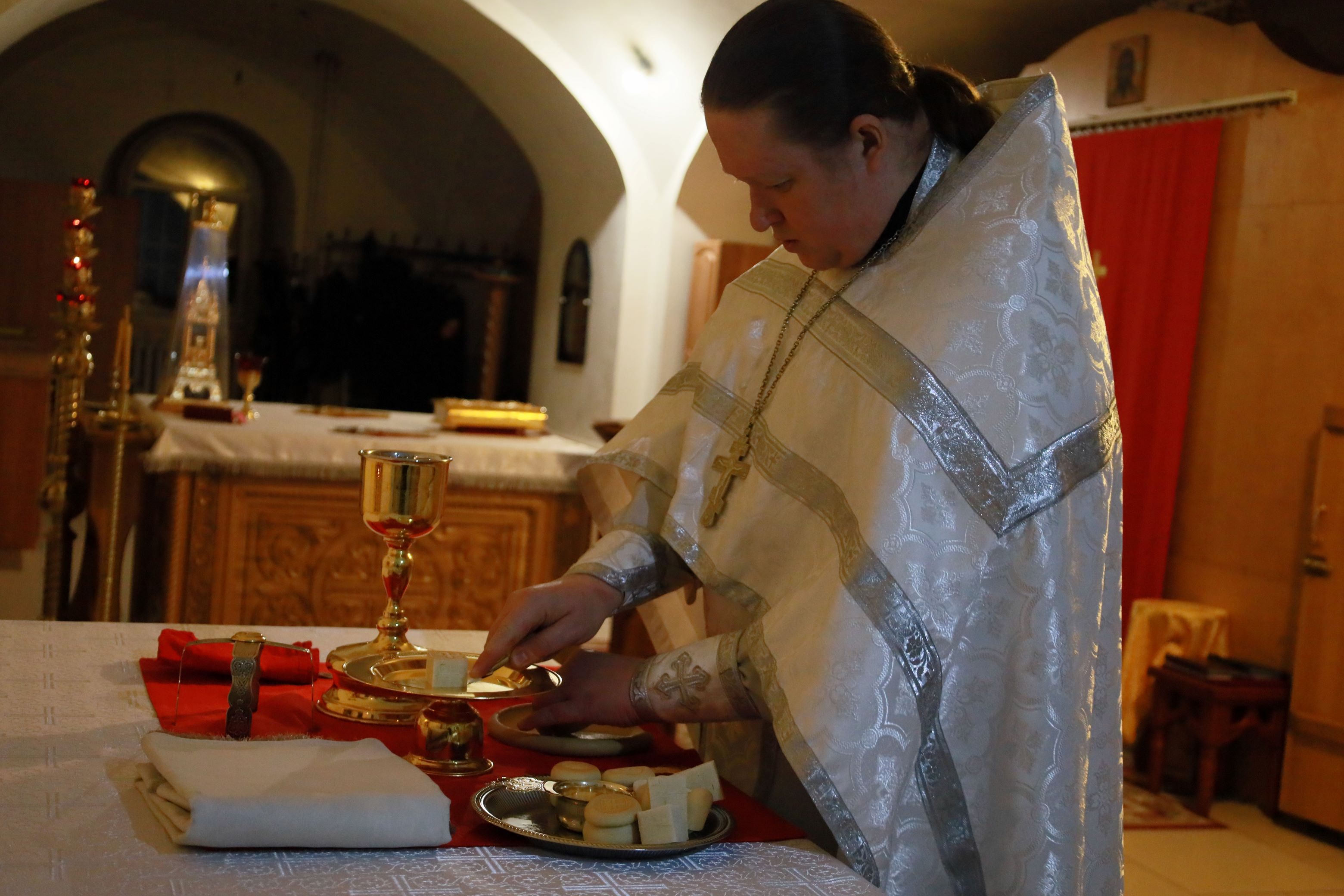 Всенощное бдение началось великим повечерием, на котором молящиеся услышали торжественную песнь пророка Исаии: «С нами Бог, разумейте, языцы, и покаряйтеся, яко с нами Бог!»