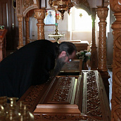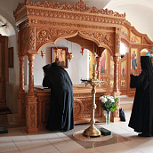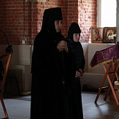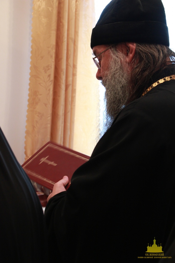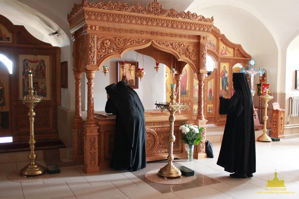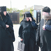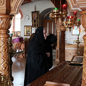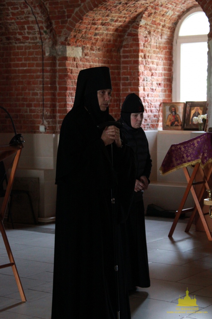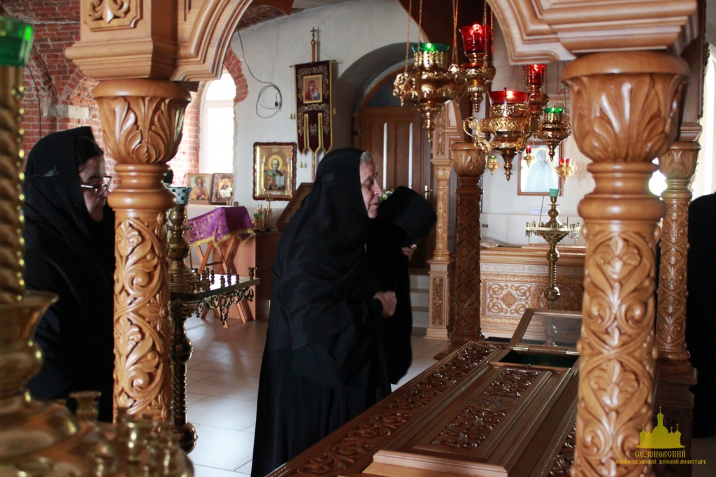 По окончании проверки гости посетили нижний храм Троицкого собора монастыря, где приложились к мощам преподобных Иоанна, Дарии и Серафимы Сезеновских, и затем Матушка игумения провела гостям краткий экскурс по обители.
