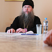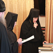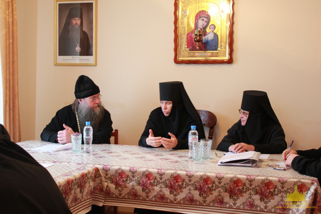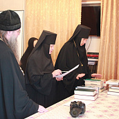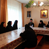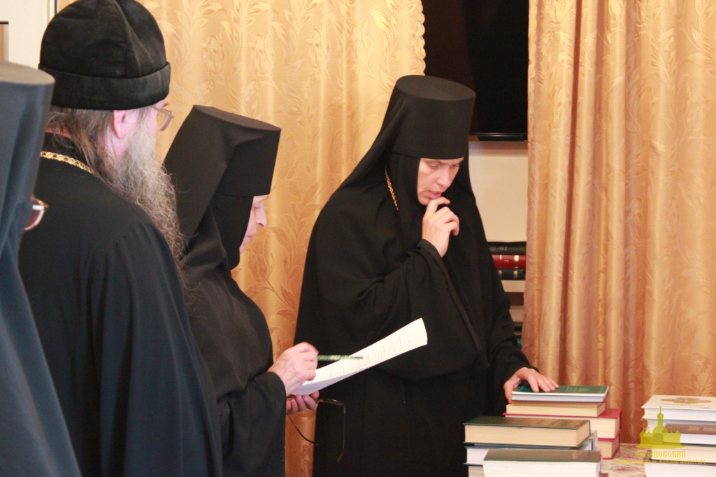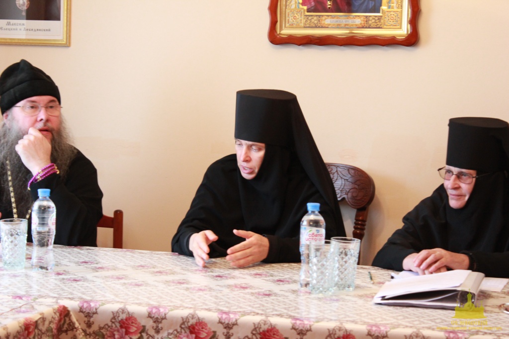 Работа Комиссии началась со встречи с настоятельницей монастыря игуменией Феофанией (Проценко) и сестрами обители – слушательницами курсов.